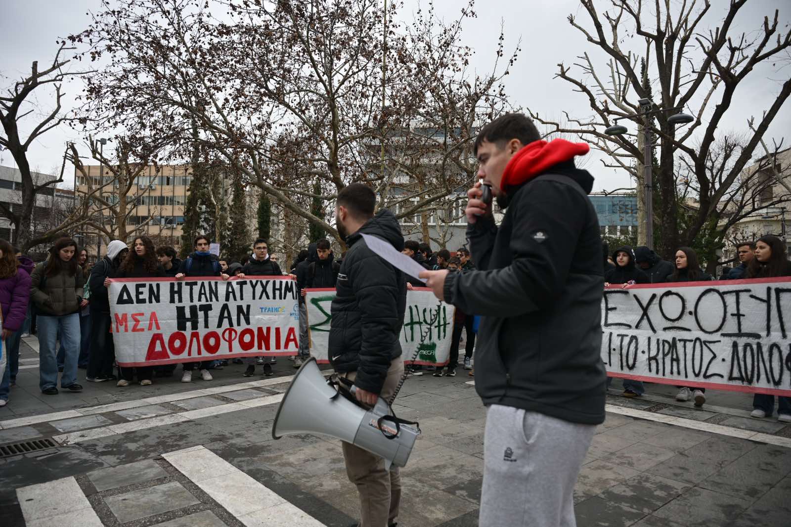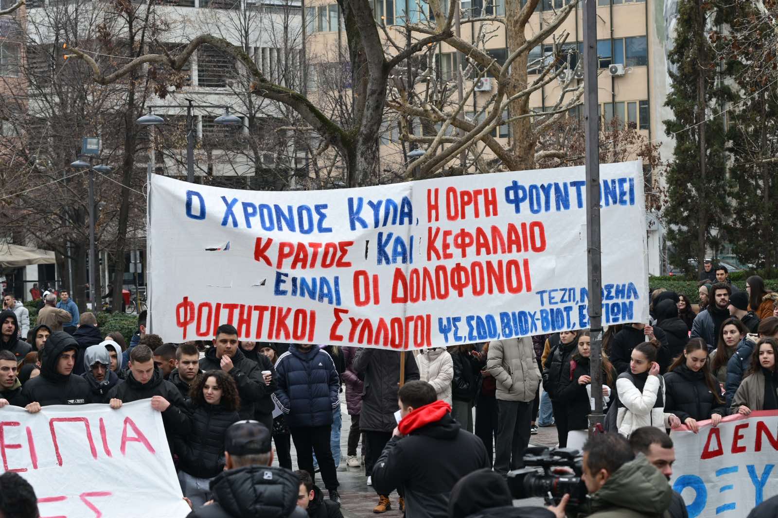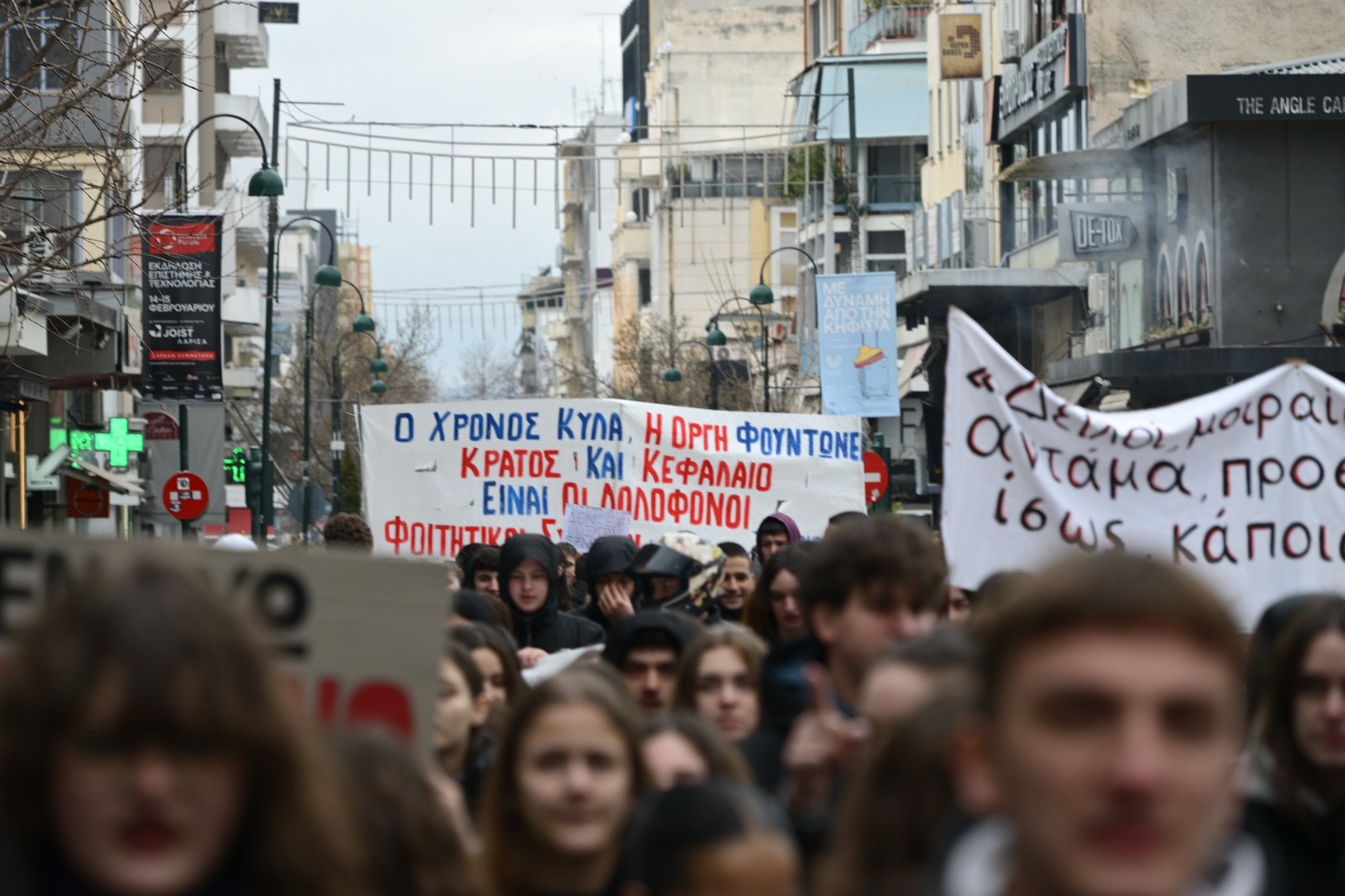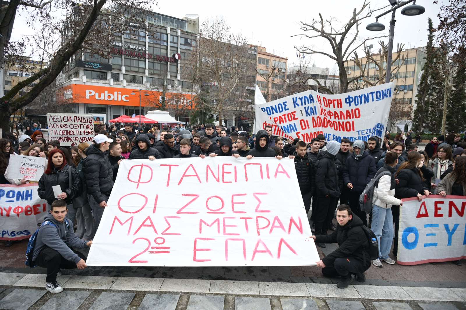 Λάρισα: Μαθητές και φοιτητές διαμαρτυρήθηκαν για την τραγωδία των Τεμπών: “Δικαίωση για τις ψυχές των παιδιών” (φωτο – βίντεο)