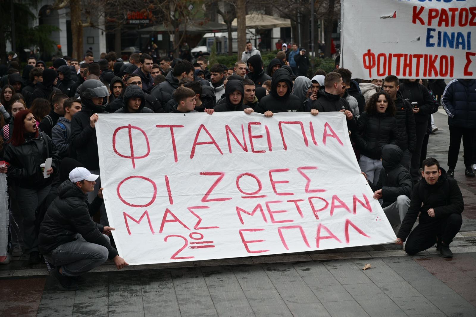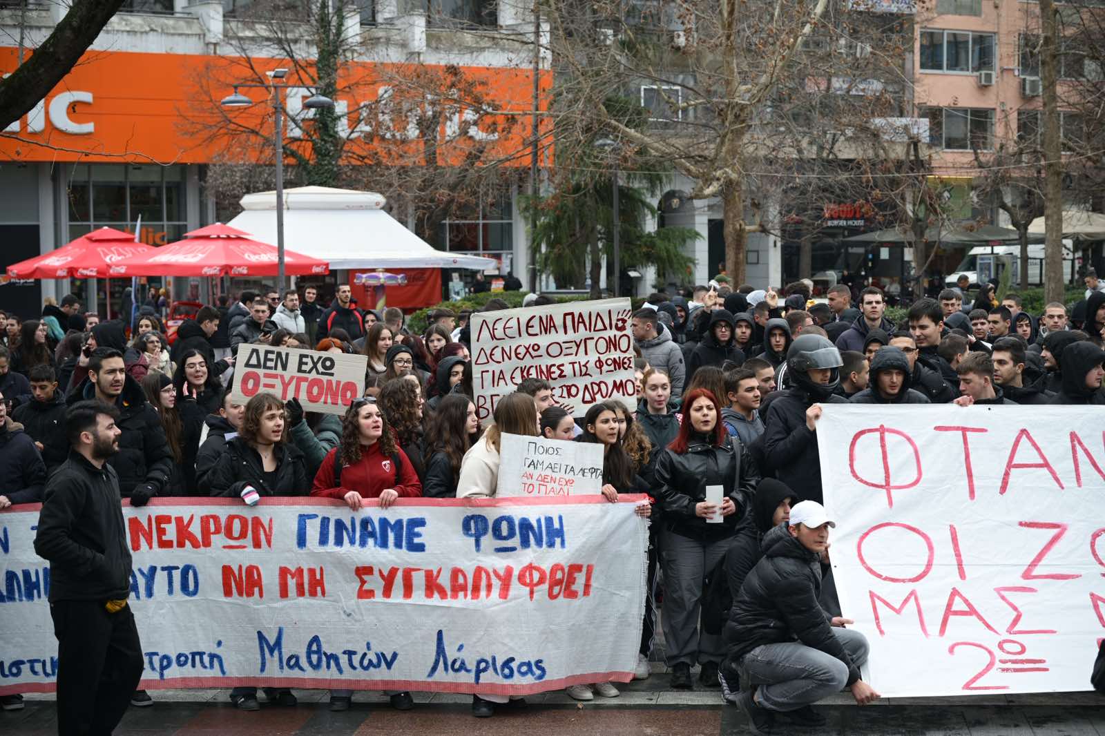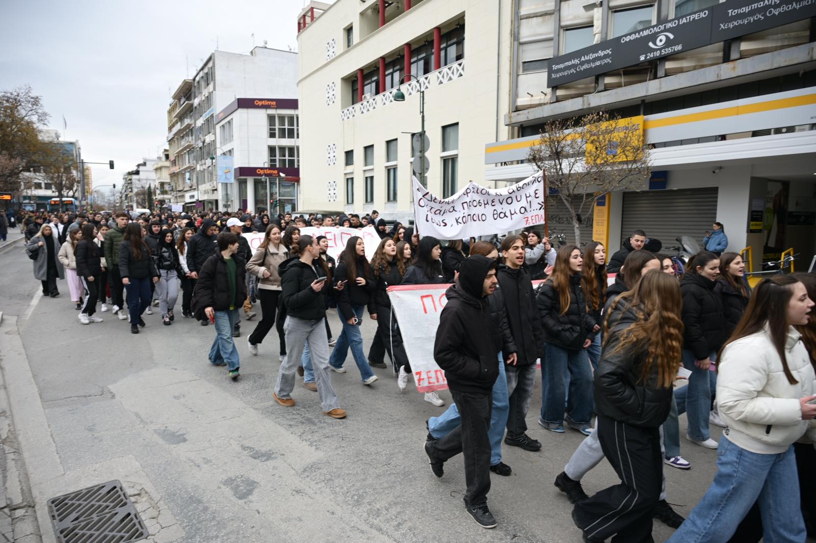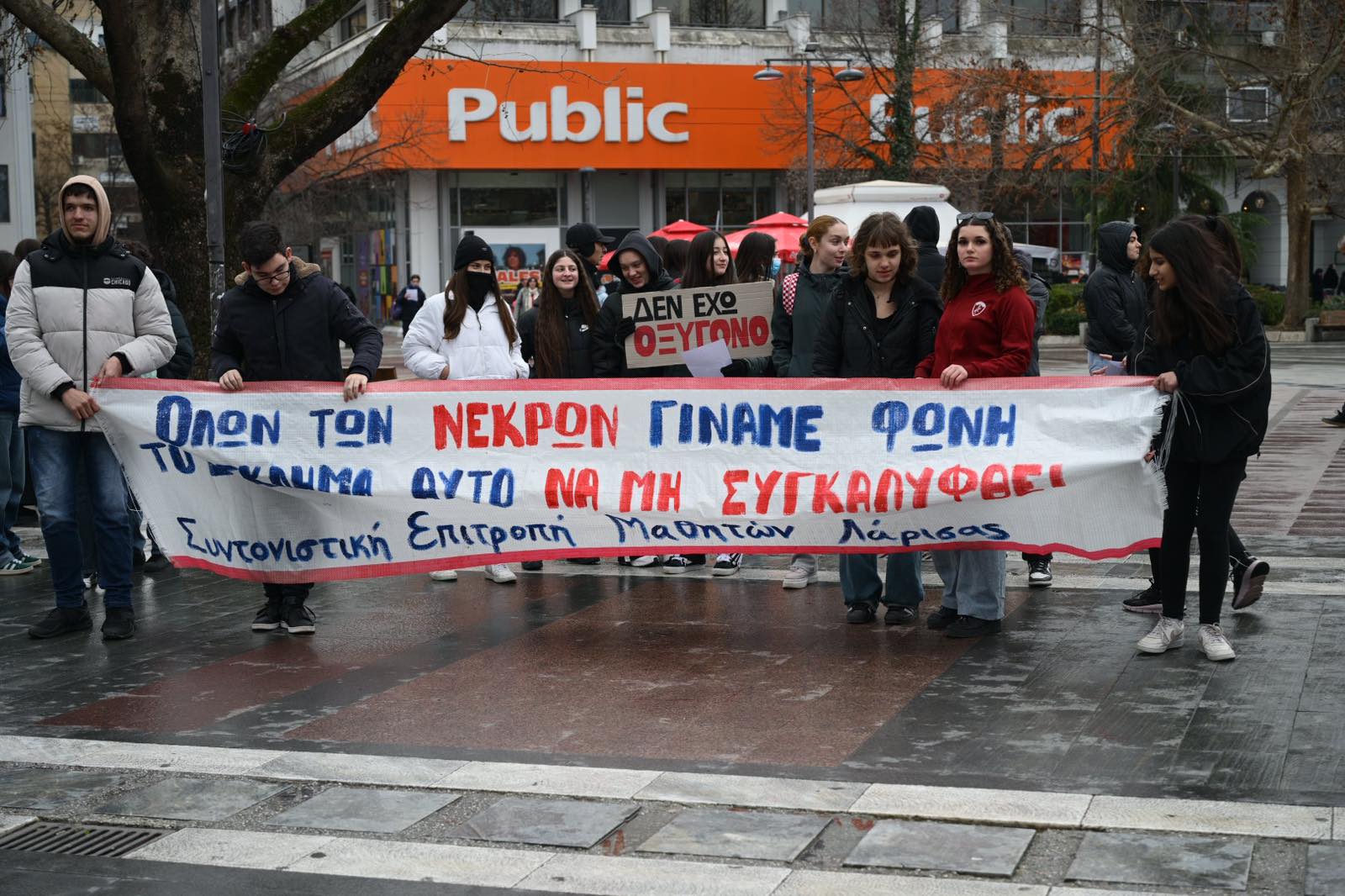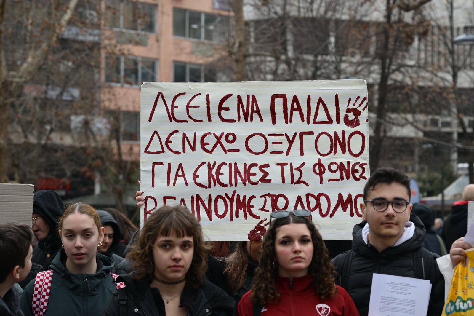 Λάρισα: Μαθητές και φοιτητές διαμαρτυρήθηκαν για την τραγωδία των Τεμπών: “Δικαίωση για τις ψυχές των παιδιών” (φωτο – βίντεο)