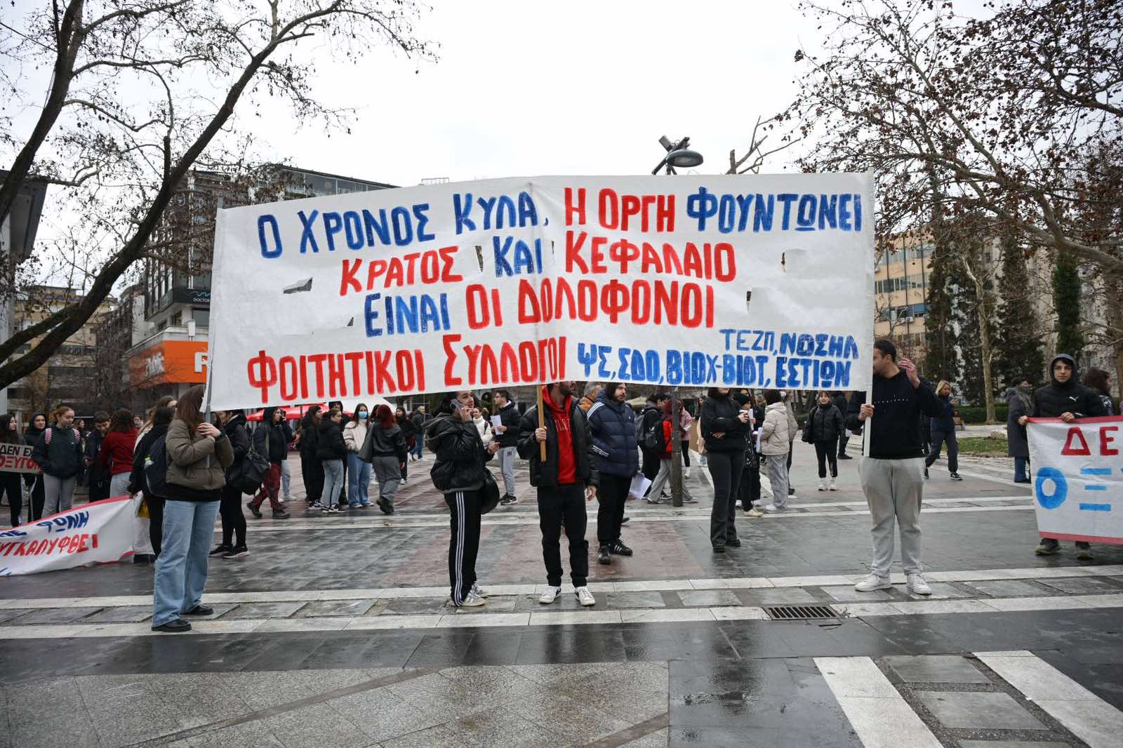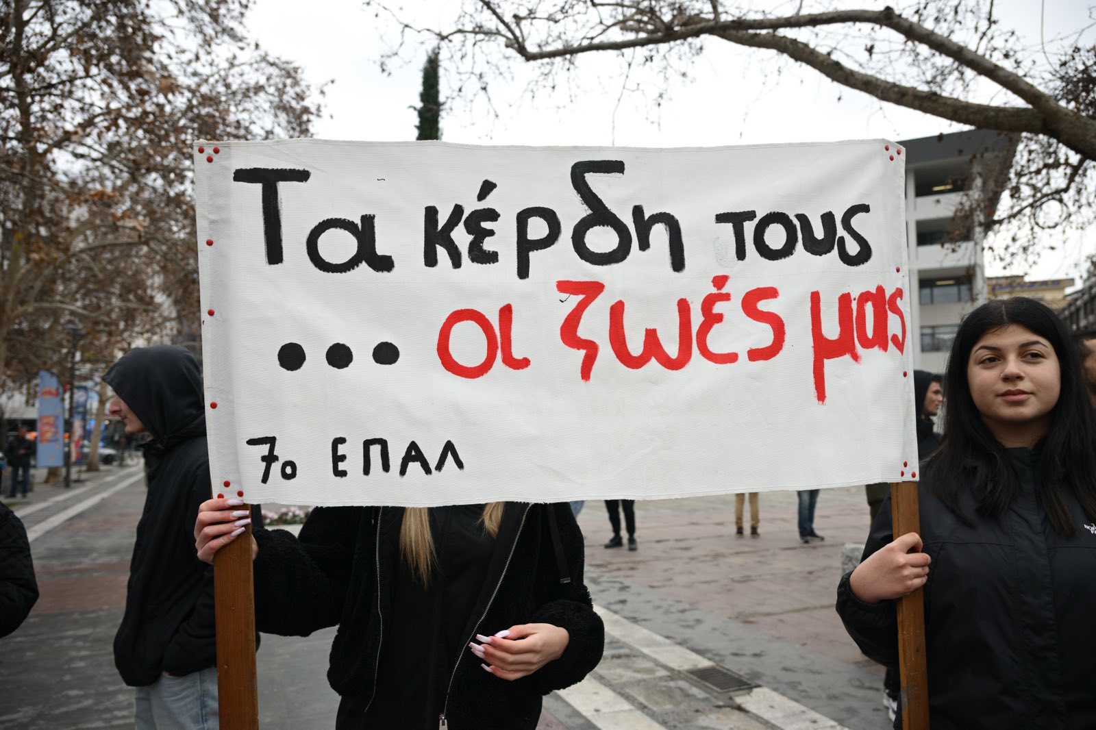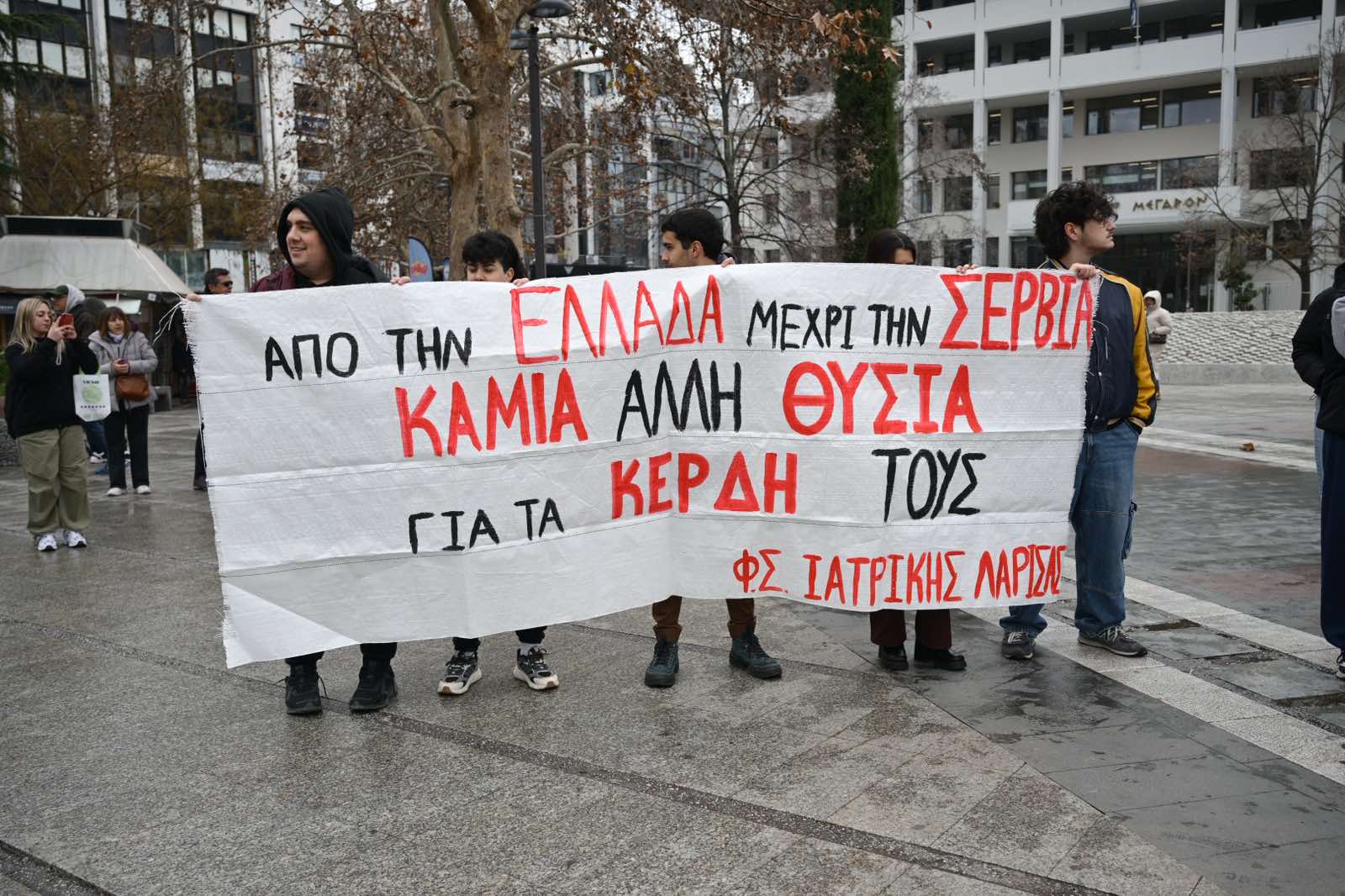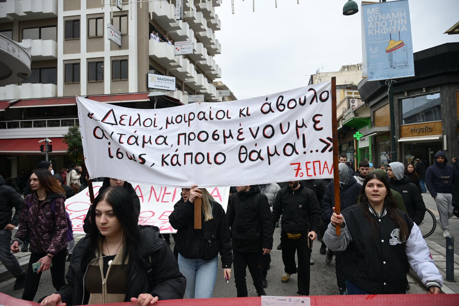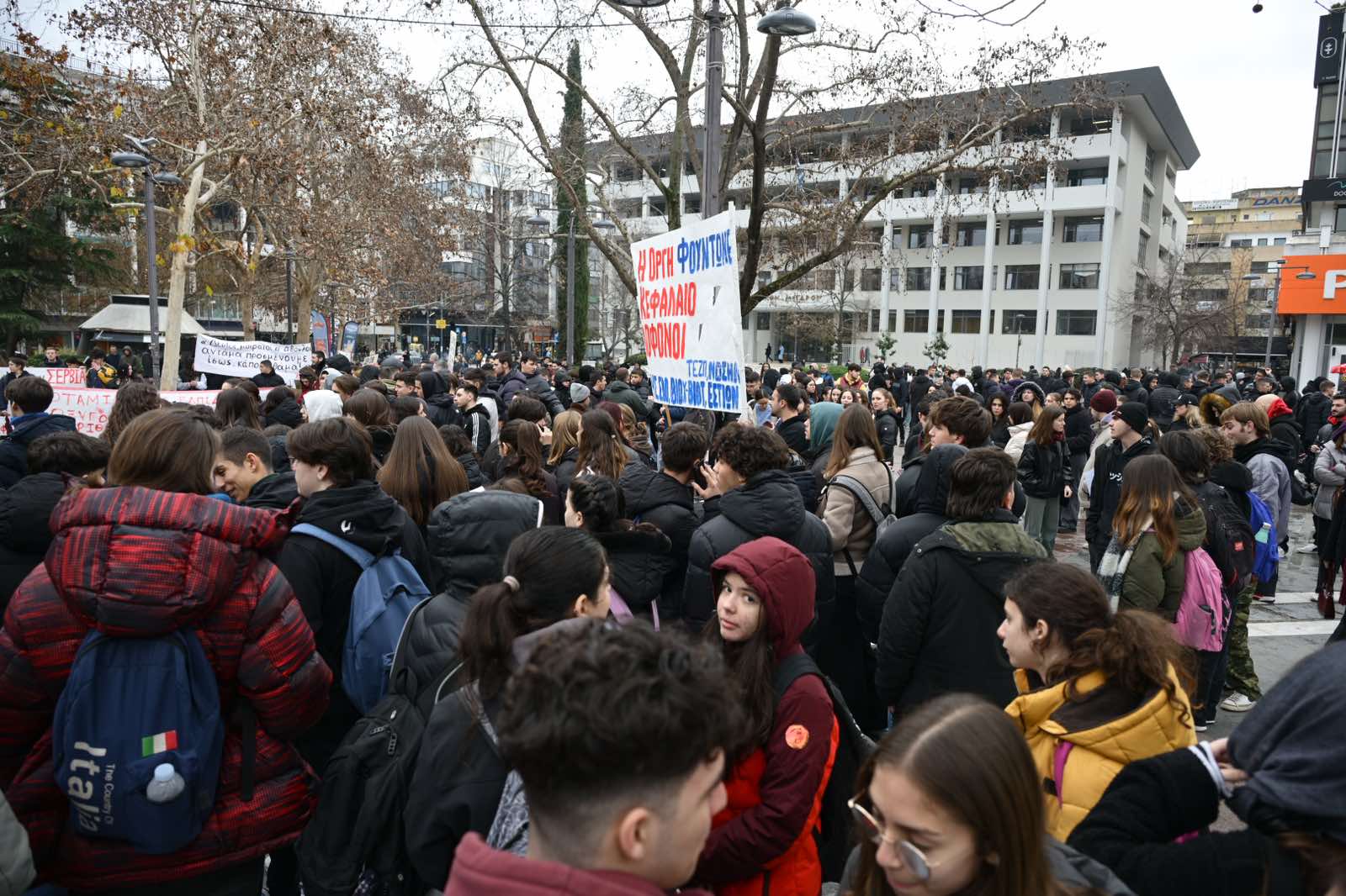 Λάρισα: Μαθητές και φοιτητές διαμαρτυρήθηκαν για την τραγωδία των Τεμπών: “Δικαίωση για τις ψυχές των παιδιών” (φωτο – βίντεο)