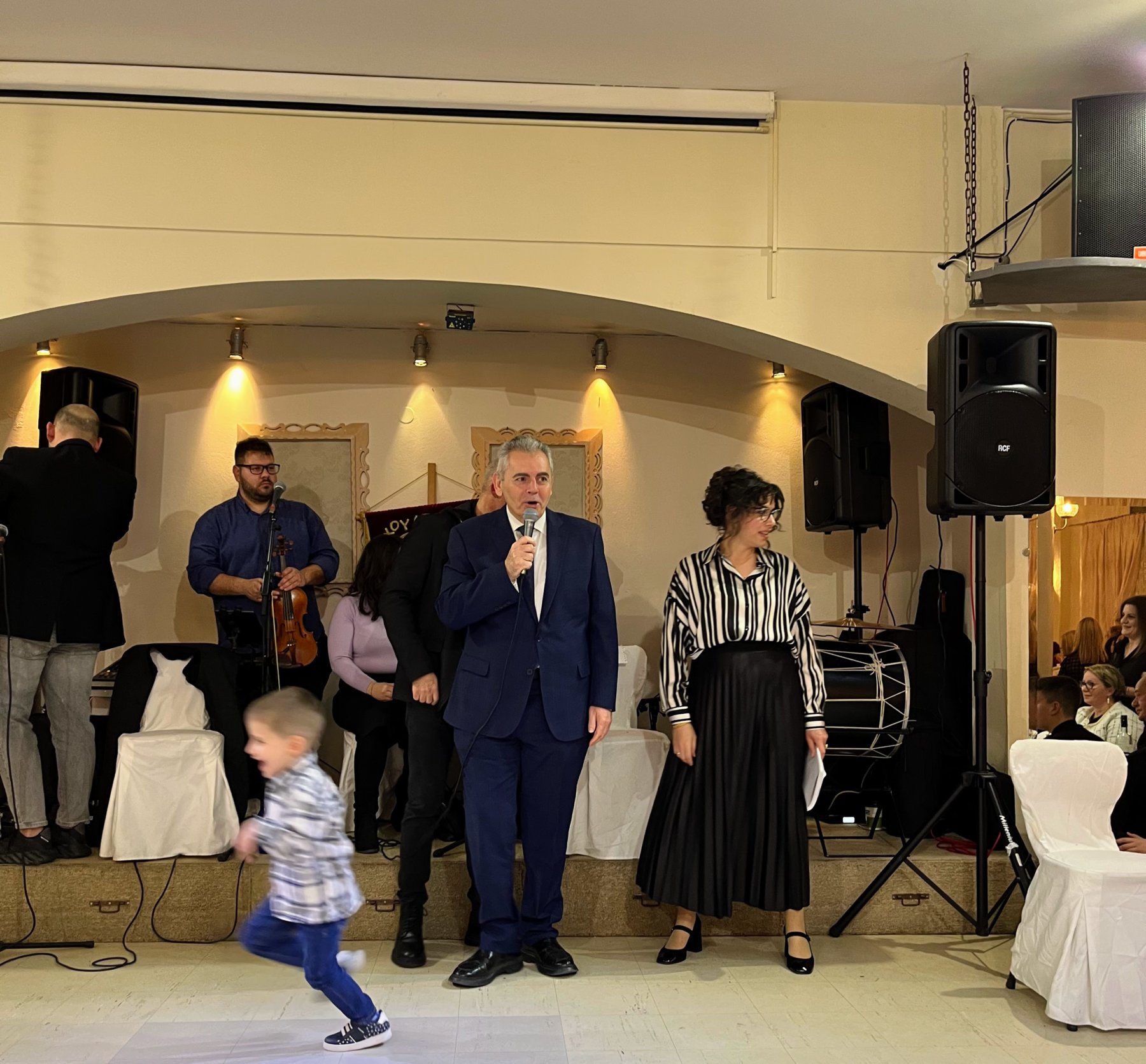 Απευθύνοντας χαιρετισμό, ο δήμαρχος Τυρνάβου, εξέφρασε τη χαρά του να βρίσκεται σε εκδήλωση ενός Συλλόγου που τιμά την παράδοση, δείχνοντας τις ρίζες μας. Ο κ. Τσικριτσής έδωσε συγχαρητήρια στο Σύλλογο για την πραγματοποίηση της ημερίδας το περασμένο καλοκαίρι, η οποία «μας έκανε»-όπως είπε-«όλους σοφότερους». «Ως δημοτική αρχή», τόνισε, «είμαστε έμπρακτα δίπλα στους Συλλόγους, είμαστε έμπρακτα σε όλες τις δράσεις που παράγουν και προάγουν τον πολιτισμό, αλλά επίσης είμαστε έμπρακτα δίπλα σας, σε έναν αγώνα που έχει ξεκινήσει ο Σύλλογός σας, ώστε το χωριό σας να κηρυχθεί Μαρτυρικό και τα εγκλήματα αυτά να μην ξεχαστούν».
