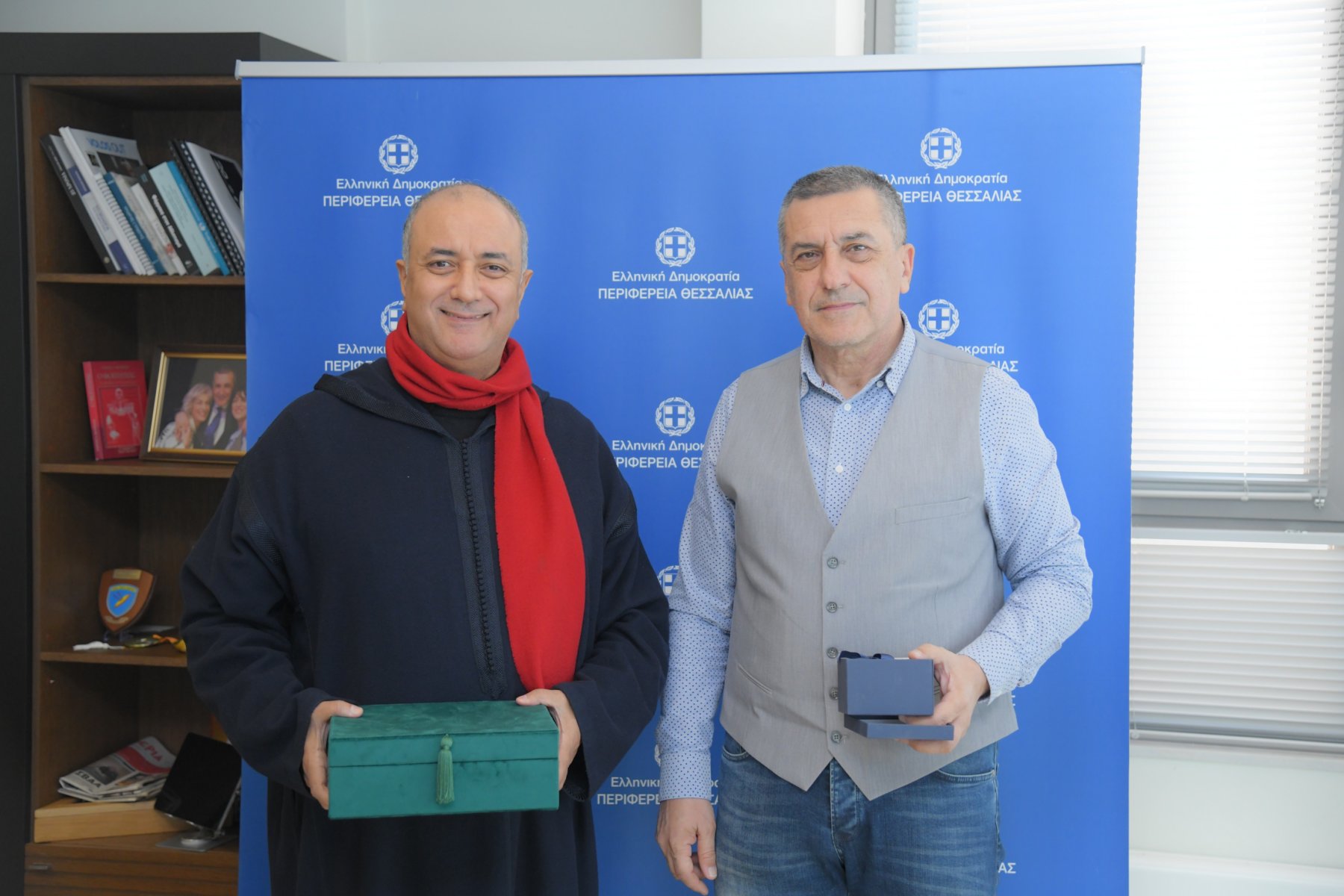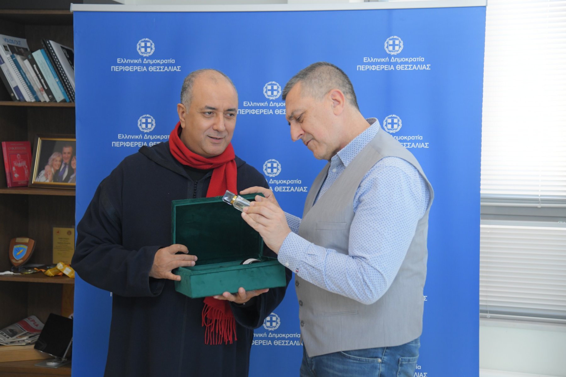 Μετά το πέρας της συνάντησης, στην οποία παρευρέθηκε και ο Εκτελεστικός Γραμματέας της Περιφέρειας Θεσσαλίας Λάζαρος Μακρής, ο Περιφερειάρχης και ο Πρέσβης του Μαρόκου, αντάλλαξαν συμβολικά δώρα.