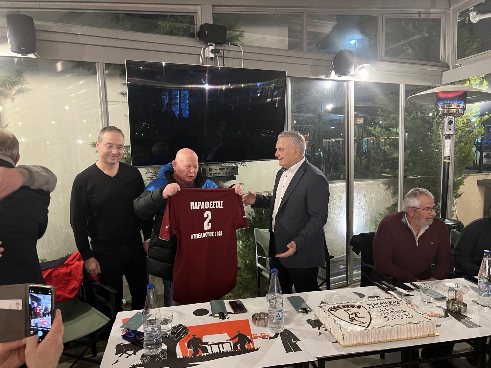 Παρόντων μεγάλων ποδοσφαιρικών μορφών του παρελθόντος των βυσσινί, αλλά και των αντιπεριφερειαρχών κ.κ. Τσέτσιλα και Σουλούκου και του αντιδημάρχου Λαρισαίων κ. Δαλαμπύρα, οι παλαίμαχοι της ΑΕΛ και φίλοι του Συλλόγου πέρασαν μία όμορφη βραδιά στο «Παραδοσιακό» στη Νεάπολη.