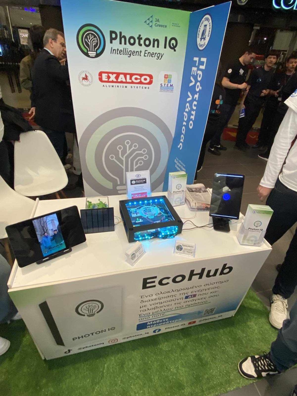 Το προϊόν – “EcoHub” (ecological / οικολογικός κόμβος) – που δημιουργήθηκε από τους «startuppers» της (εικονικής) επιχείρησης “Photon IQ” (www.photoniq.gr) αποτελεί ένα ολοκληρωμένο προϊόν “έξυπνης” (με τεχνητή νοημοσύνη / ΑΙ (Artificial Intelligence) διαχείρισης της ενέργειας που αξιοποιεί τη δυνατότητα παραγωγής και αποθήκευσης, ανάλογα με την ώρα, την ημέρα, την παραγωγή αλλά και τη ζήτηση. H επιχείρηση εντάσσεται στον τομέα της οικιακής ενέργειας και εξειδικεύεται στην παραγωγή έξυπνων συστημάτων κατανομής ενέργειας με τη χρήση φωτοβολταϊκών και όχι μόνο. Στόχος είναι η ανανεώσιμη και οικονομική ενέργεια για ευρεία χρήση. Μπορεί να έχει οικιακή εφαρμογή, σε μονοκατοικίες ή πολυκατοικίες, με ή χωρίς φωτοβολταϊκό σύστημα καθώς και χρήση σε επιχειρήσεις. Η παρουσίαση της πρότασης του Προτύπου ΓΕΛ απέσπασε άριστες κριτικές.