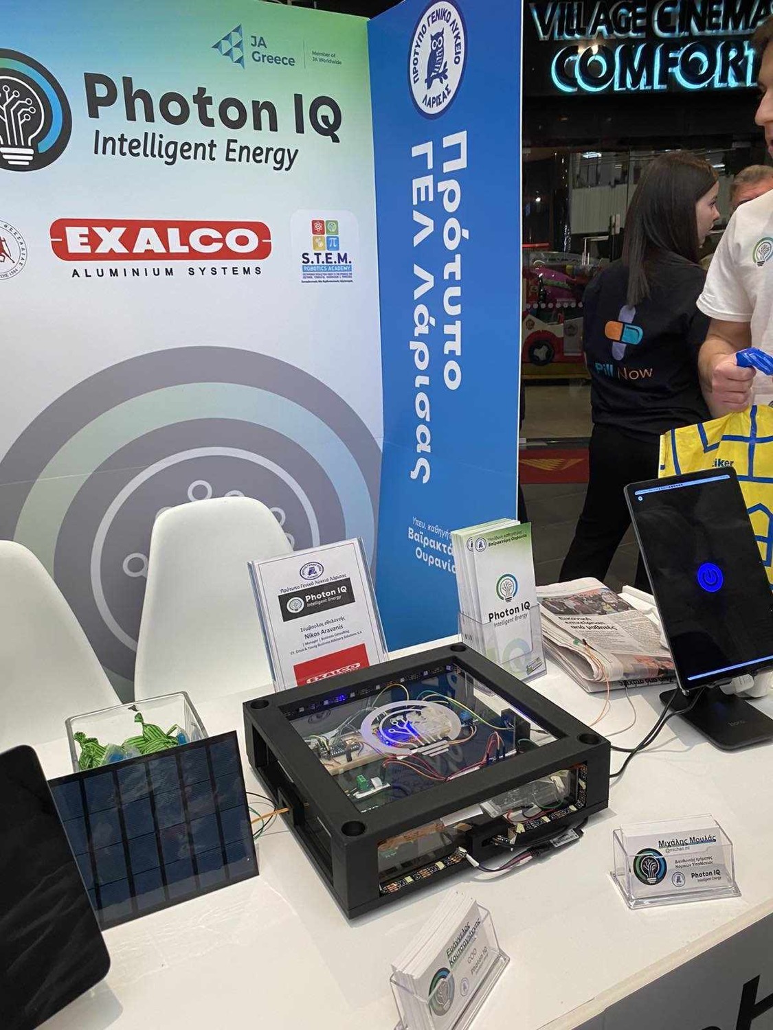 Το εξαιρετικής ποιότητας προϊόν που δημιούργησαν ως μέλη της νεοφυούς – «Start Up» – επιχείρησης διαχείρισης ενέργειας με την επωνυμία «Photon IQ» παρουσίασαν οι «startuppers» μαθητές και μαθήτριες του Προτύπου Γενικού Λυκείου Λάρισας στην Εμπορική Έκθεση νεανικής επιχειρηματικότητας που πραγματοποιήθηκε την περασμένη Παρασκευή στο «Mediterranean Cosmos» της Θεσσαλονίκης. H Έκθεση εντάσσεται στο πλαίσιο του προγράμματος «Εικονική Επιχείρηση» το οποίο οργανώνει και συντονίζει ο εκπαιδευτικός Οργανισμό «Junior Achievement – Greece» και στο οποίο πρόγραμμα συμμετέχει το Πρότυπο ΓΕΛ της πόλης μας με μεγάλο χορηγό στην προσπάθειά του αυτή τη γνωστή Λαρισινή βιομηχανία Αλουμινίου «Exalco A.E.».