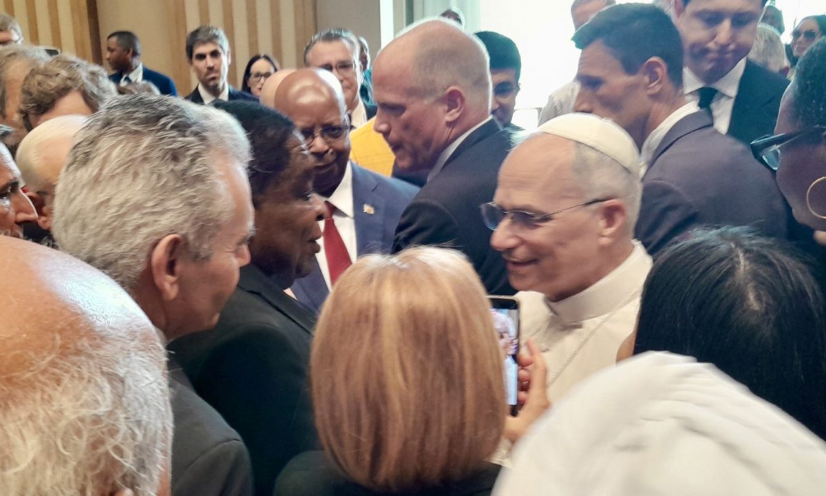Ο Μάξιμος Χαρακόπουλος στη συνάντηση με τον πάπα Λέοντα ΙΔ´ στο Βατικανό.