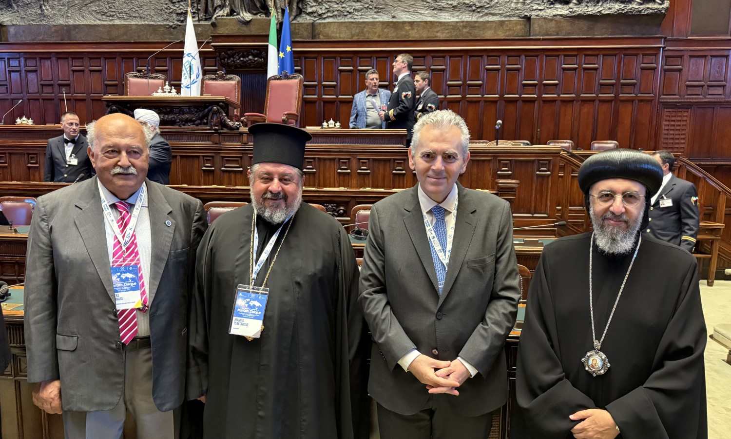 Στην Διάσκεψη της Ρώμης συμμετείχαν αντιπροσωπείες από τα Κοινοβούλια μέλη της IPU, θρησκευτικοί ηγέτες, διπλωμάτες, ειδικοί εμπειρογνώμονες διεθνών οργανισμών, μέλη της ακαδημαϊκής κοινότητας και εκπρόσωποι της κοινωνίας των πολιτών. Στην αντιπροσωπεία της ΔΣΟ στην Ρώμη, εκτός από τον κ. Χαρακόπουλο, συμμετείχαν ο Πρόεδρος της Γ.Σ. της ΔΣΟ, μέλος της Βουλής των Αντιπροσώπων της Ρουμανίας, κ. Ioan Vulpescu και ο Σύμβουλος της Οργάνωσης, δρ Κώστας Μυγδάλης. Επίσης, ο Μητροπολίτης Ζάμπιας και Μοζαμβίκης κ. Ιωάννης, Σύνδεσμος της ΔΣΟ με το Παναφρικανικό Κοινοβούλιο (PAP), συμμετείχε ως ειδικός προσκεκλημένος της IPU στην τελετή έναρξης της Γενικής Συζήτησης.
