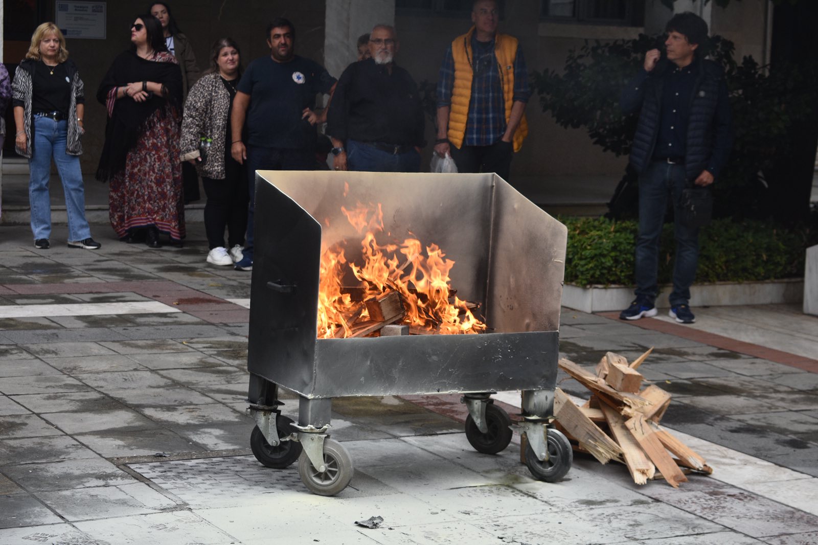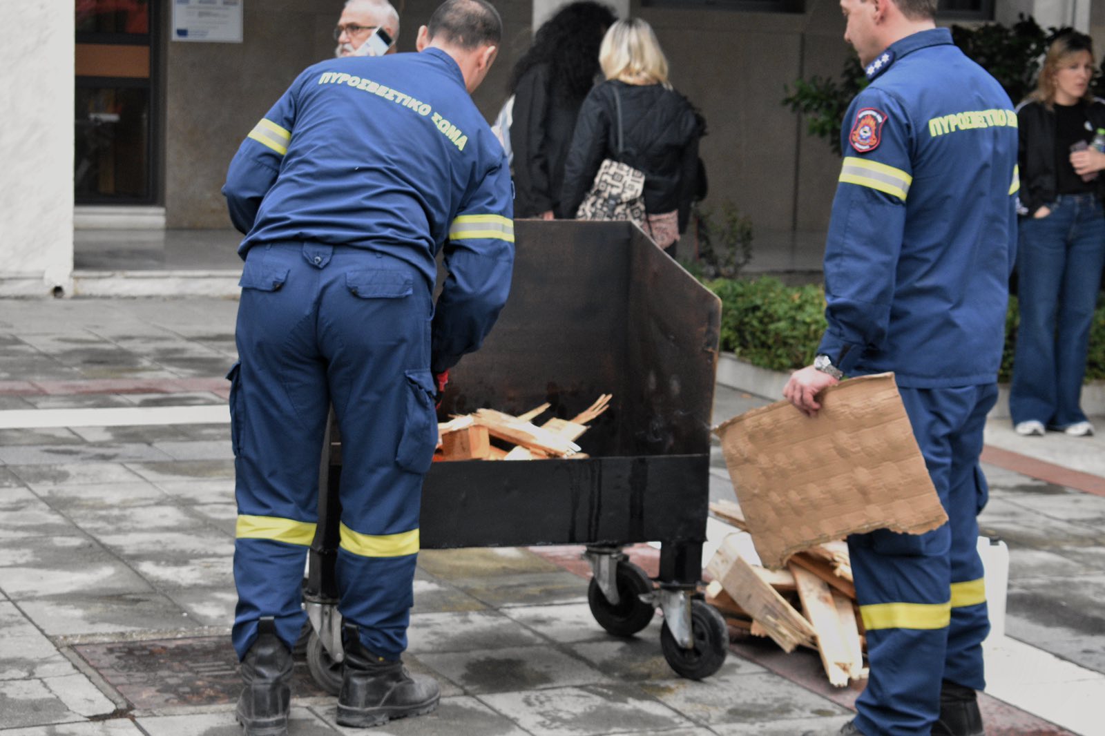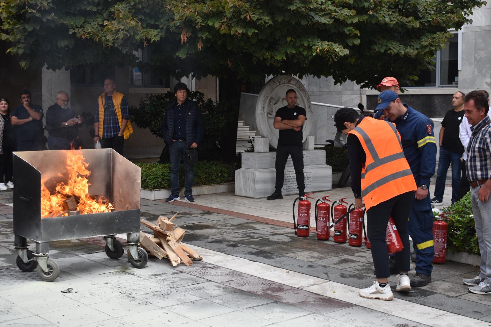 Στον εξωτερικό χώρο του κτιρίου πραγματοποιήθηκε άναμμα ελεγχόμενης φωτιάς, ενώ στη συνέχεια έγινε επίδειξη κατάσβεσης με φορητούς πυροσβεστήρες. Στελέχη της Πυροσβεστικής Υπηρεσίας εξήγησαν τη σωστή χρήση των μέσων πυρόσβεσης, δίνοντας παράλληλα τη δυνατότητα σε εργαζόμενους να συμμετάσχουν πρακτικά στην άσκηση.