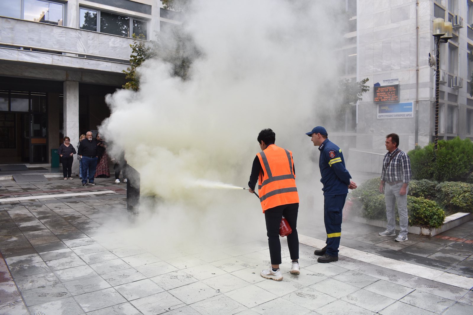 Με επιτυχία πραγματοποιήθηκε η επίδειξη χρήσης πυροσβεστικών μέσων στο Διοικητήριο της Περιφέρειας Θεσσαλίας στη Λάρισα, παρουσία της αντιπεριφερειάρχη Λάρισας, κ. Μαρίας Γαλλιού.