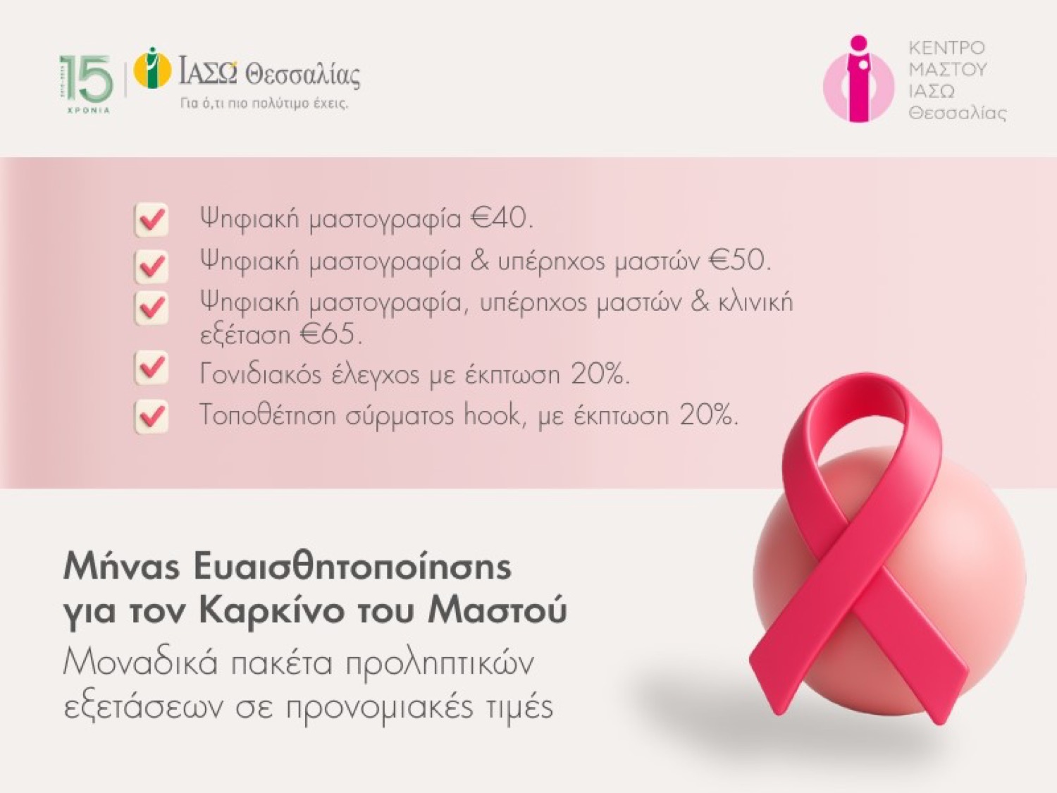 Κέντρο Μαστού ΙΑΣΩ Θεσσαλίας: Προνομιακά πακέτα εξετάσεων – Η πρόληψη είναι η δύναμη κάθε γυναίκας