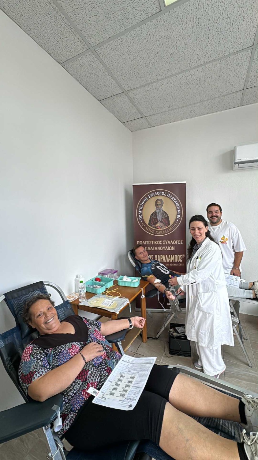 Ο Πολιτιστικός Σύλλογος Πλατανουλίων «Ο Άγιος Χαράλαμπος» σε συνεργασία με τη Μονάδα Αιμοδοσίας του Γενικού Νοσοκομείου Λάρισας και τον Ελληνικό Ερυθρό Σταυρό πραγματοποίησε σήμερα με απόλυτη επιτυχία εθελοντική αιμοδοσία στο Αγροτικό Ιατρείο του χωριού.