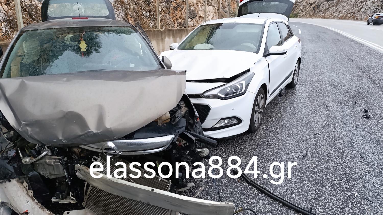 Αρχικά ένα αυτοκίνητο με κατεύθυνση προς Ελασσόνα, εξετράπη της πορείας του κάτω από αδιευκρίνιστες συνθήκες, με αποτέλεσμα, πρώτα να πέσει πάνω στα κιγκλιδώματα του δρόμου και στη συνέχεια να πεταχτεί στο αντίθετο ρεύμα κυκλοφορίας στο τοιχείο αντίστιξης, με αποτέλεσμα επερχόμενο αυτοκίνητο με κατεύθυνση προς Τύρναβο να πέσει πάνω του.