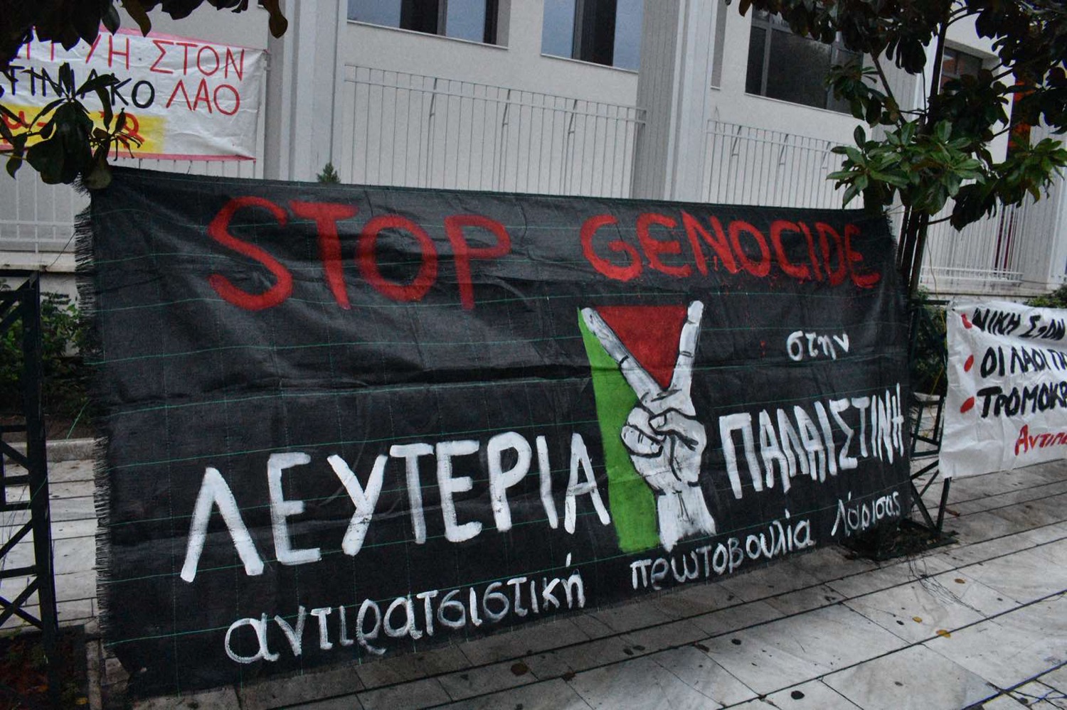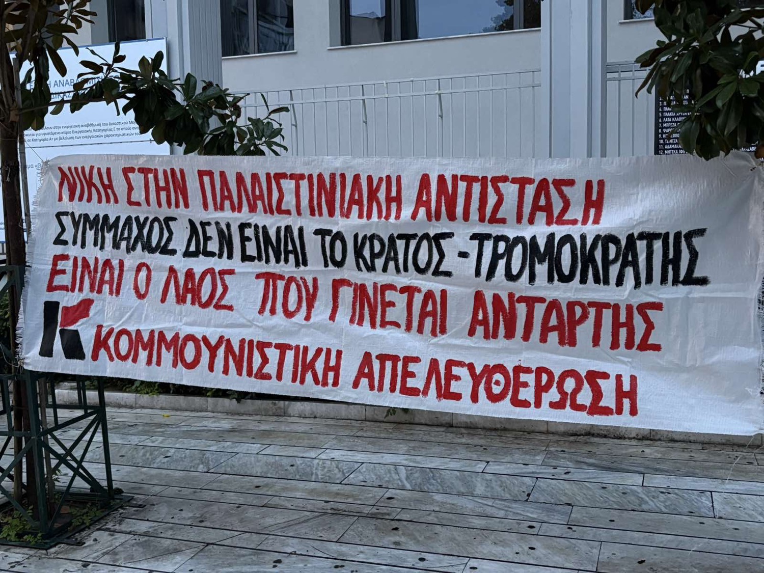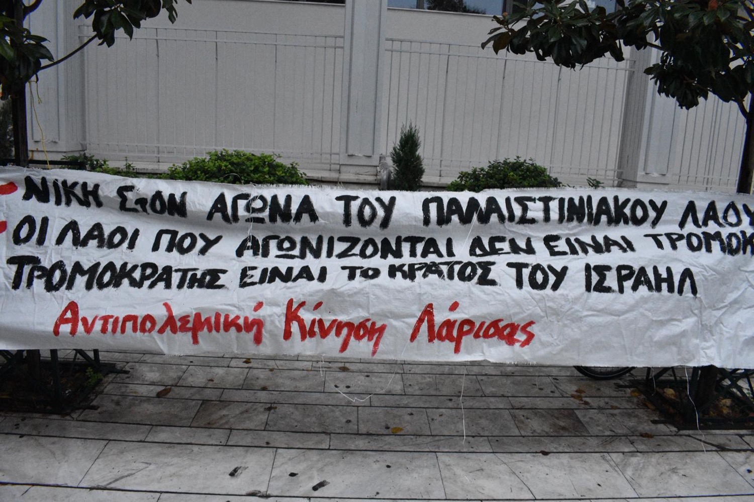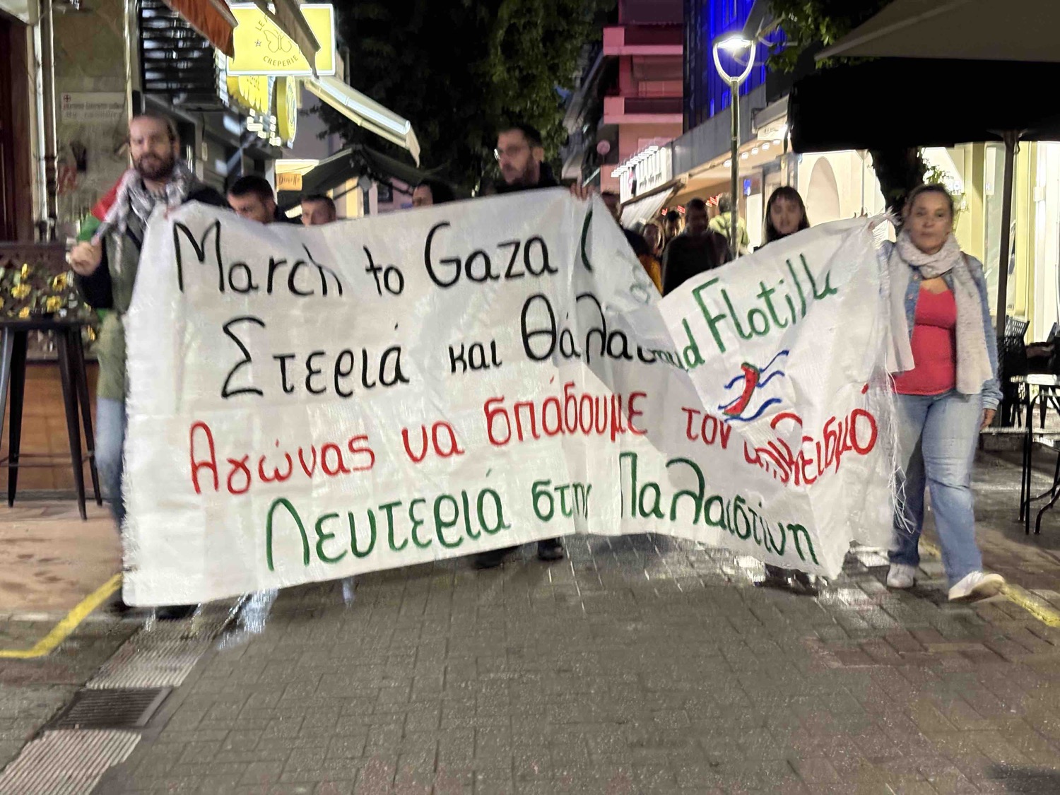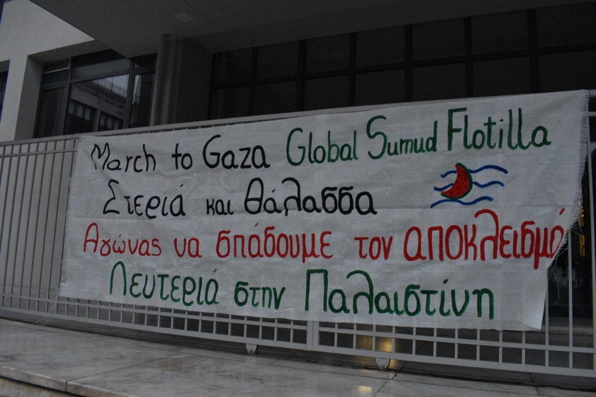 Μήνυμα αλληλεγγύης υπέρ της Παλαιστίνης και της Global Sumud Flotilla στη Λάρισα (φώτο)