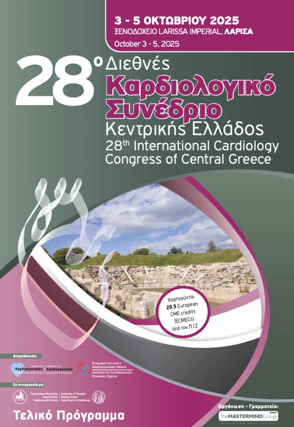 Το συνέδριο διοργανώνεται από το Ινστιτούτο Καρδιαγγειακής Εκπαίδευσης & Έρευνας και το Κυπριακό Ινστιτούτο Καρδιαγγειακών Νόσων σε συνεργασία με την Καρδιολογική Κλινική του Πανεπιστημίου Θεσσαλίας.