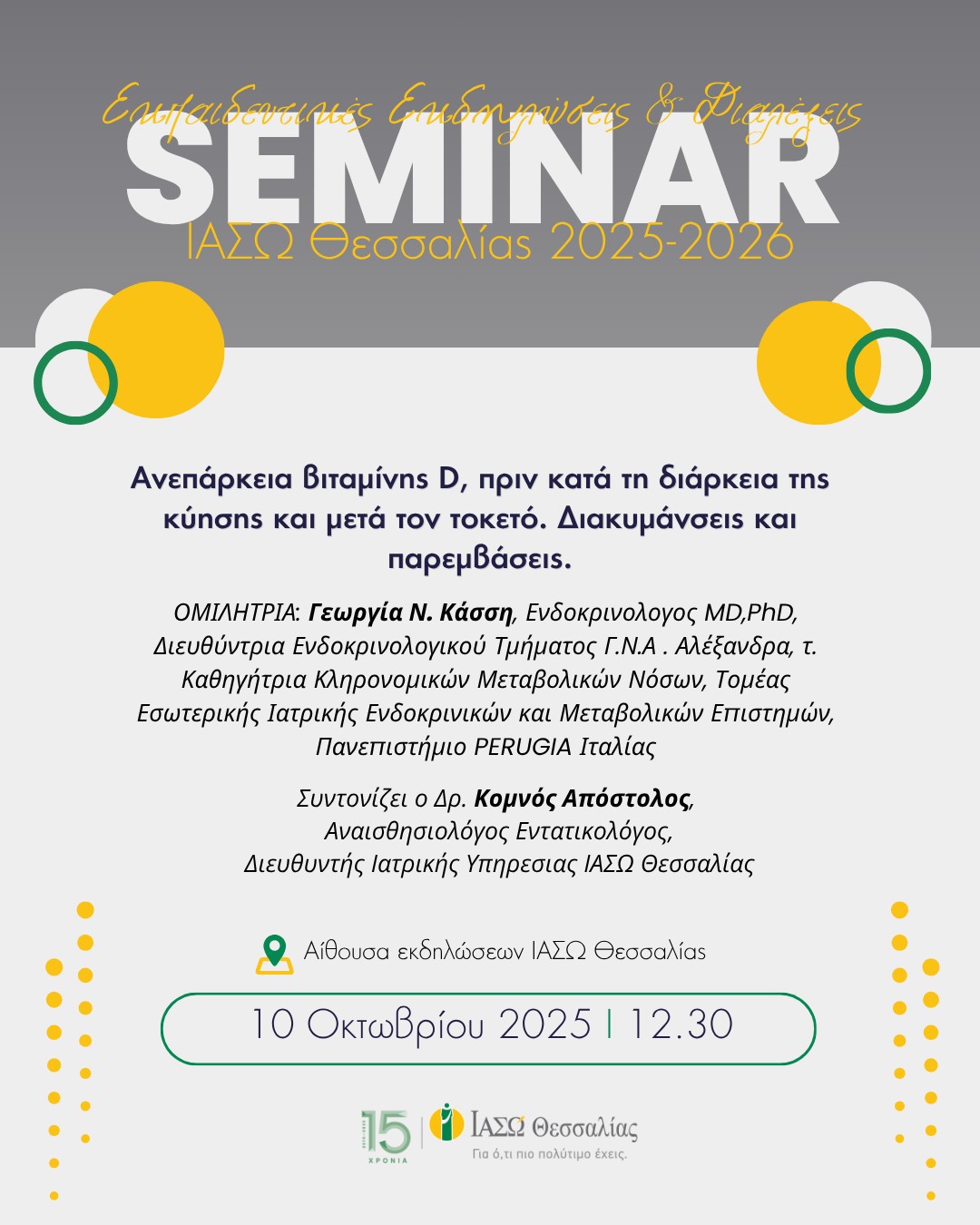 Το ΙΑΣΩ Θεσσαλίας ξεκινά τον νέο κύκλο Επιστημονικών Διαλέξεων 2025-2026!