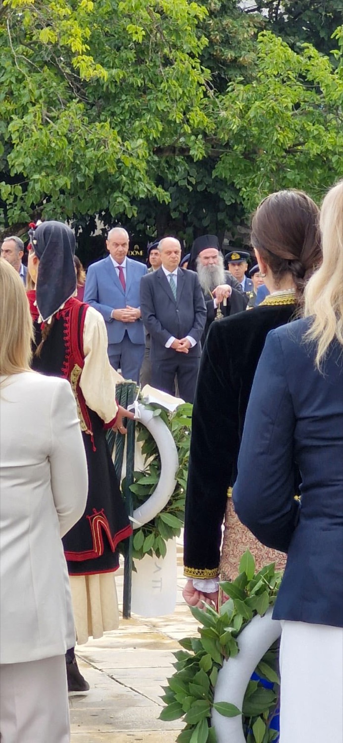 Ακολούθως, κατέθεσε στεφάνι στο Ηρώο των Πεσόντων στην κεντρική πλατεία της πόλης, αποτίοντας φόρο τιμής σε όσους αγωνίστηκαν και θυσιάστηκαν για την ελευθερία της πατρίδας.