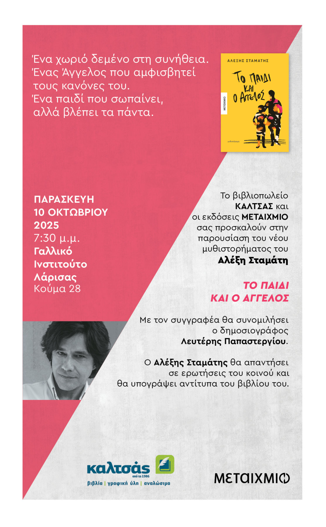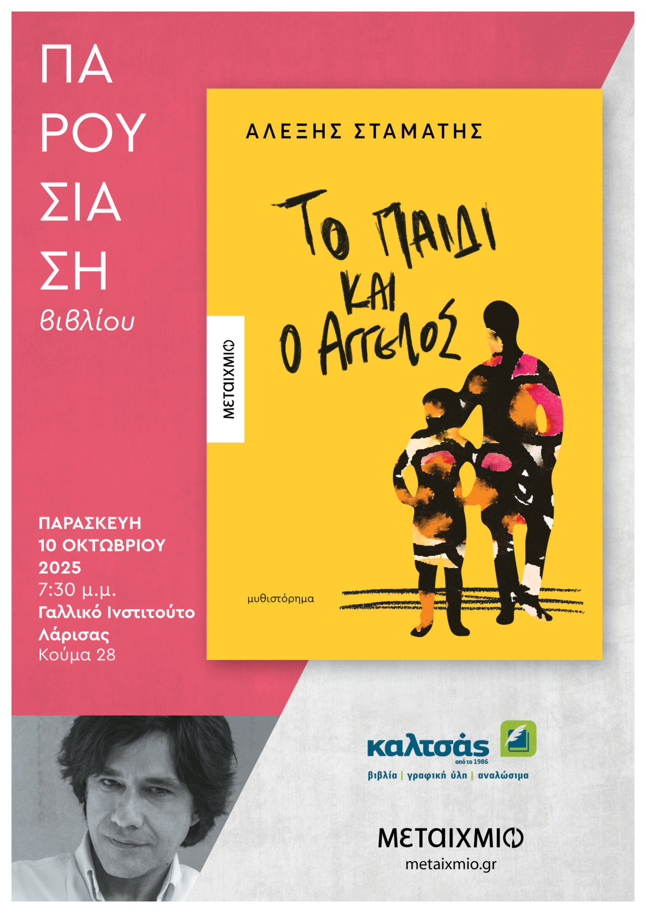 O Αλέξης Σταμάτης συναντάει τους αναγνώστες του στη Λάρισα με αφορμή το νέο του μυθιστόρημα «Το παιδί και ο Άγγελος»