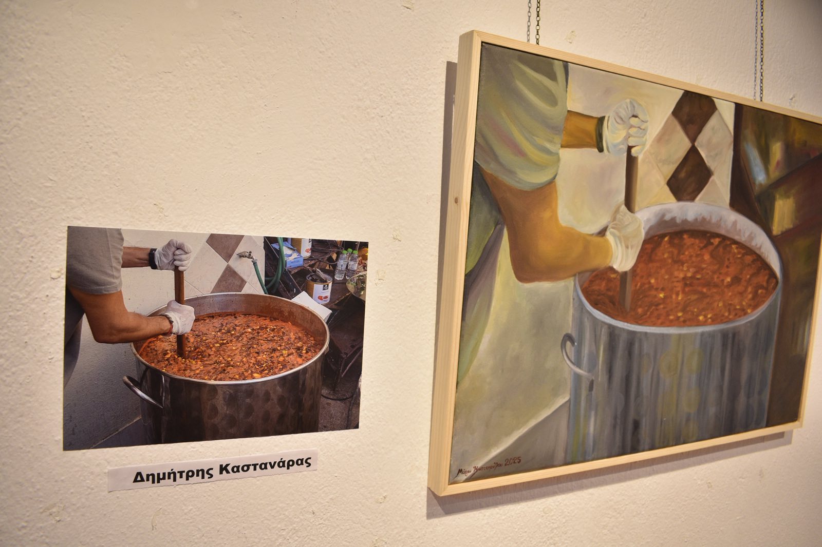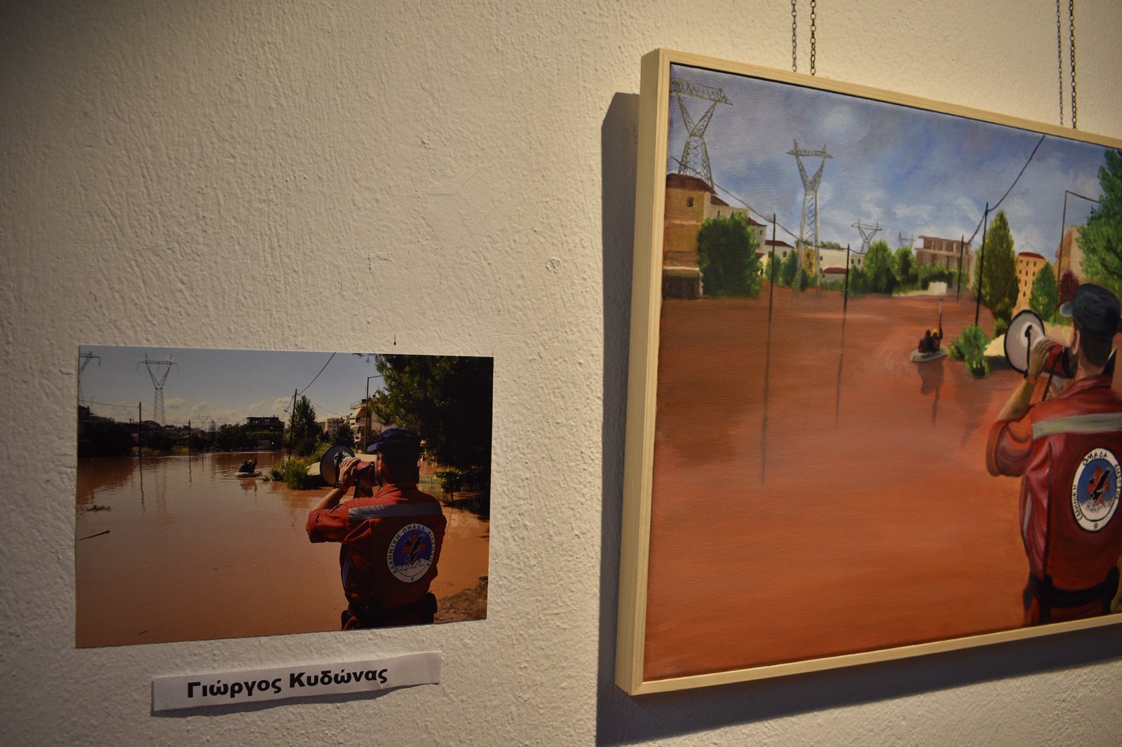 Οι φωτογραφίες των φωτορεπόρτερ συνδυάζονται με τα ζωγραφικά έργα της εικαστικού Μαρίας Κωστοπούλου, η οποία με ιδιαίτερη ευαισθησία και πρωτοτυπία καταφέρνει να μεταπλάσει τη σκληρή πραγματικότητα σε εικαστική δημιουργία με βαθύ εσωτερικό φορτίο.