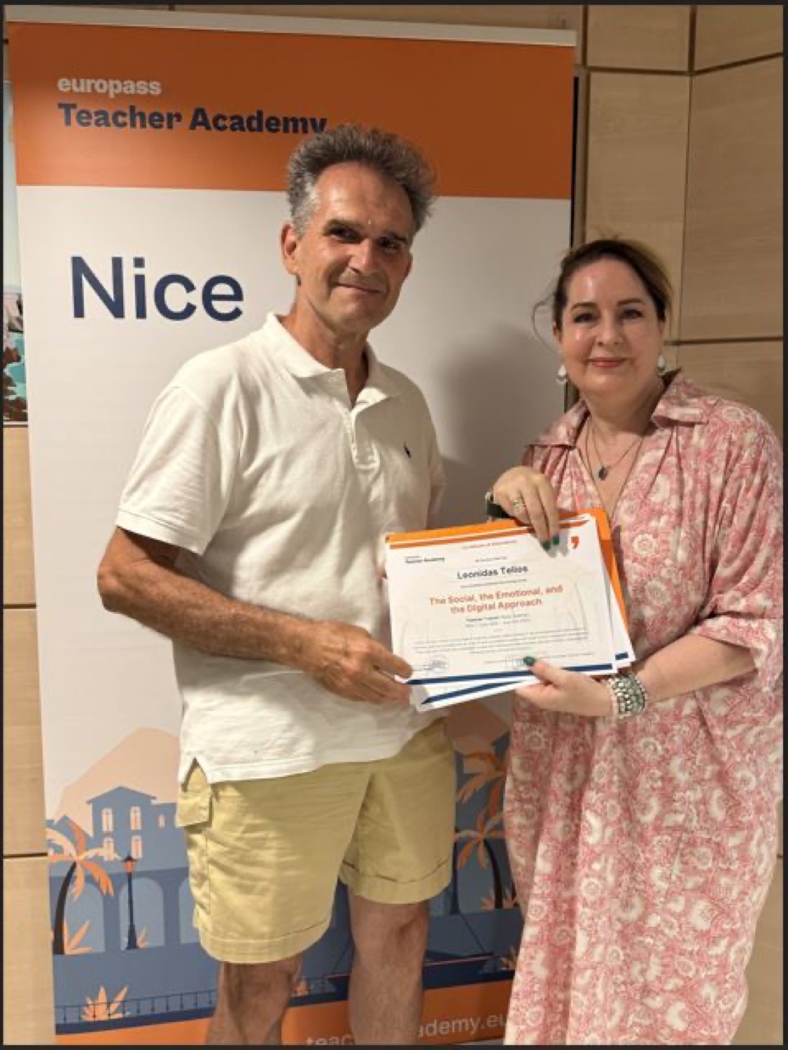 Νίκαια, Γαλλία (30 Ιουνίου – 5 Ιουλίου 2025): Ο κ. Τέλιος Λεωνίδας (ΠΕ01-Θεολόγος) παρακολούθησε το σεμινάριο “The Social, the Emotional, and the Digital Approach”, το οποίο επικεντρώθηκε στη διαχείριση της διαφορετικότητας στη σχολική τάξη και την ενίσχυση της συμμετοχής όλων των μαθητών/τριών. Το σεμινάριο προσέφερε πρακτικά εργαλεία για την πρόληψη και αντιμετώπιση συγκρούσεων στη σχολική καθημερινότητα, ενώ παράλληλα εξετάστηκε η αξιοποίηση ψηφιακών εργαλείων και εφαρμογών ως μέσων ένταξης και συμμετοχής. Οι συμμετέχοντες/ουσες είχαν την ευκαιρία να σχεδιάσουν καινοτόμα διδακτικά σενάρια που συνδυάζουν κοινωνικές, συναισθηματικές και ψηφιακές προσεγγίσεις, δημιουργώντας ένα ολιστικό πλαίσιο παρέμβασης στην τάξη.