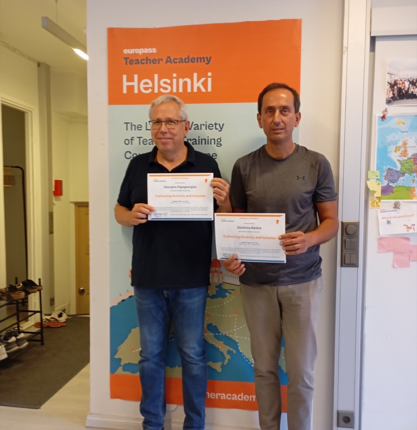 Ελσίνκι, Φινλανδία (21-26 Αυγούστου 2025): Στην πρωτεύουσα της Φινλανδίας, τρεις εκπαιδευτικοί του σχολείου παρακολούθησαν δύο παράλληλα σεμινάρια. Οι κ.κ. Παπαγεωργίου Γεώργιος (ΠΕ02-Φιλόλογος) και Ράιδος Δημήτριος (ΠΕ04.01-Φυσικός) παρακολούθησαν το “Cultivating Diversity & Inclusion “, το οποίο επικεντρώθηκε στη διαχείριση της ποικιλομορφίας και την ενίσχυση της ένταξης στον σχολικό χώρο. Οι εκπαιδευτικοί εξερεύνησαν μεθόδους και τεχνικές για τη δημιουργία ενός ανοιχτού, δημοκρατικού και συμπεριληπτικού μαθησιακού περιβάλλοντος, όπου όλοι/ες οι μαθητές/τριες, ανεξαρτήτως πολιτισμικής, γλωσσικής, κοινωνικής ή άλλης ταυτότητας, νιώθουν αποδεκτοί/ές και ισότιμοι/ες και εκπαιδεύτηκαν σε πρακτικά εργαλεία για την πρόληψη και αντιμετώπιση διακρίσεων, στερεοτύπων και προκαταλήψεων στην καθημερινή διδακτική πράξη.