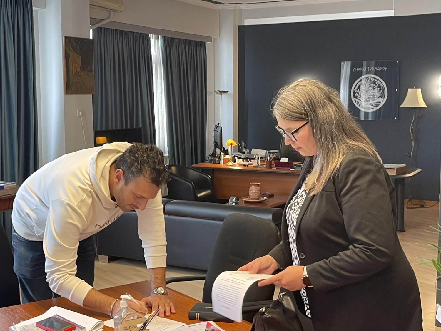 Τη νέα υπάλληλο υποδέχθηκαν ο Δήμαρχος Τυρνάβου Στέλιος Τσικριτσής και η Προϊσταμένη της Διεύθυνσης Οικονομικών Υπηρεσιών Ελένη Χατζηζήση, οι οποίοι την καλωσόρισαν θερμά και της ευχήθηκαν καλή δύναμη και επιτυχία στα καθήκοντά της.