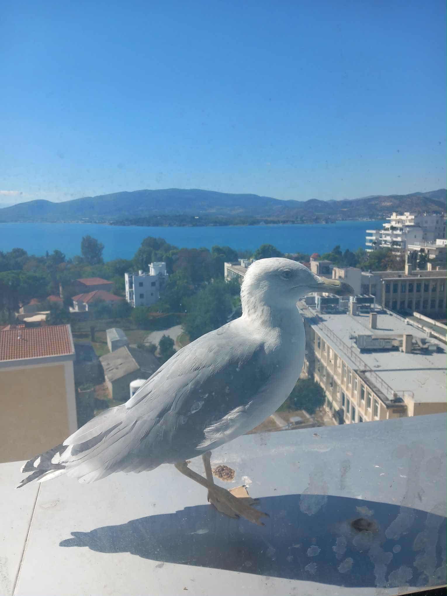 Κάθε μέρα, την ίδια ακριβώς ώρα, λίγο πριν σερβιριστεί το φαγητό στους ασθενείς, ένας γλάρος εμφανίζεται στον προαύλιο χώρο του Νοσοκομείου Βόλου. Δεν χρειάζεται ρολόι — ξέρει.