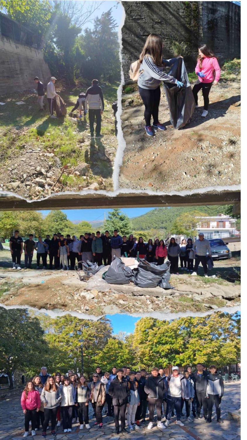 Στη Συνέχεια περπάτησαν τη φυσική διαδρομή της περιοχής (Μεγαλόβρυσο-Αγιά), θαυμάζοντας το φυσικό τοπίο, και παράλληλα συμμετείχαν σε οργανωμένη δράση καθαρισμού του περιβάλλοντος χώρου του ποταμού Άμυρου. Οι μαθητές/μαθήτριες, με ενθουσιασμό και αίσθημα ευθύνης, εξόπλισαν τα χέρια τους με σακούλες και γάντια και ανέλαβαν να καθαρίσουν μονοπάτια και σημεία περιπάτου, στέλνοντας το μήνυμα ότι η προστασία του περιβάλλοντος είναι υπόθεση όλων μας.
