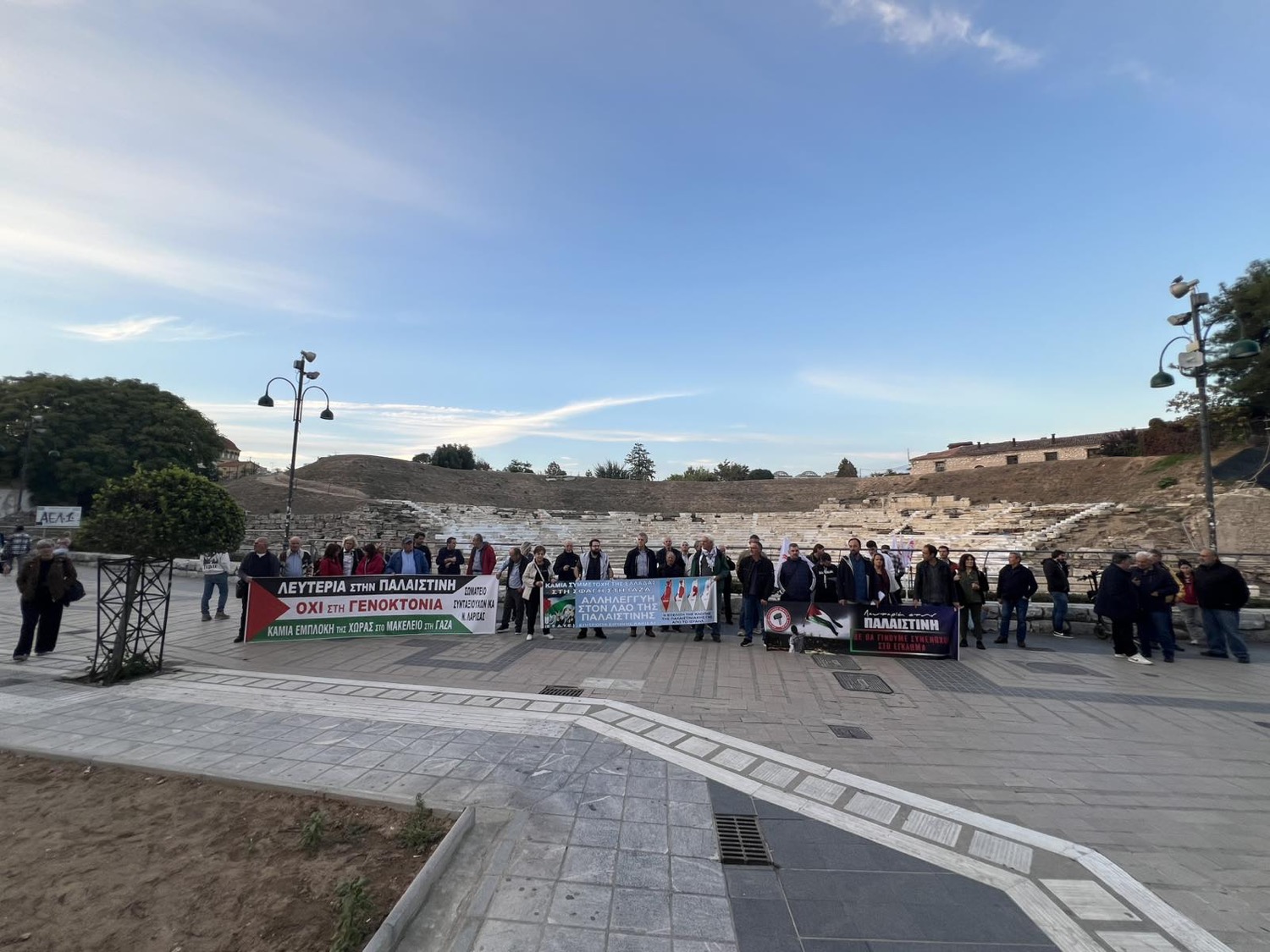 Λάρισα: Πικετοφορία αλληλεγγύης στον παλαιστινιακό λαό στο Αρχαίο Θέατρο -“Ο αγώνας τους είναι και δικός μας αγώνας” (φώτο – βίντεο)