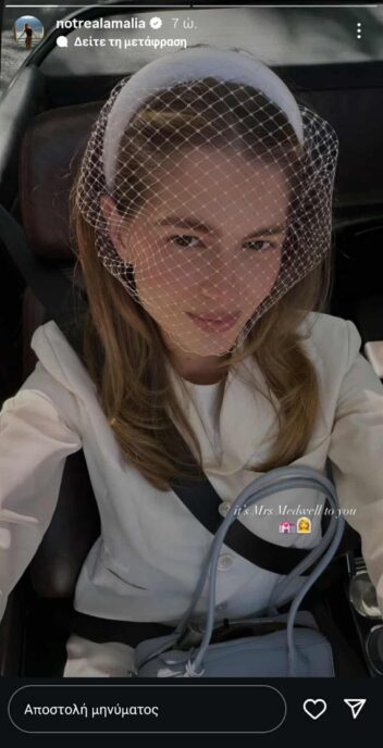 Μάλιστα, στο ένα στιγμιότυπο την βλέπουμε με νυφικό βέλο και λεζάντα «Its Mrs Medwell to you (Κυρία Μέντγουελ για εσάς)».