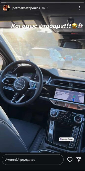 Ο ίδιος έκανε και σχετικό story από το Τέξας, ενώ πριν λίγες ημέρες ανάρτηση από το Τέξας έκανε και η Τζένη Μπαλατσινού.