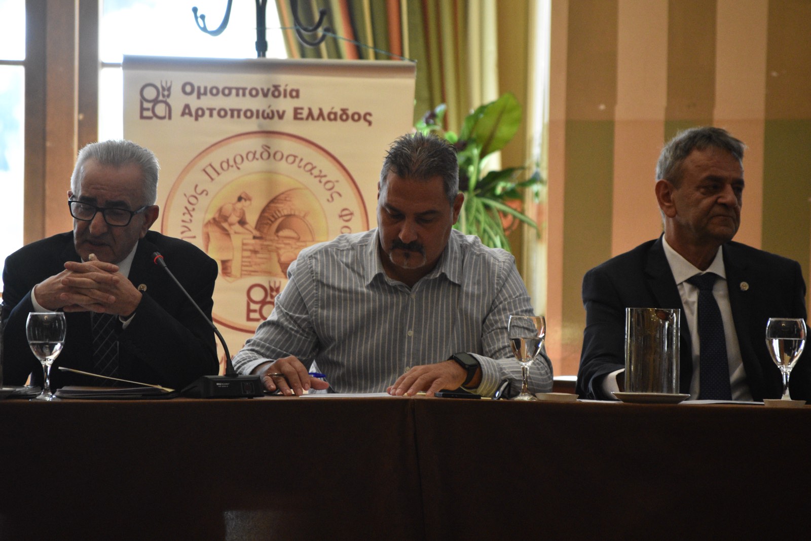 Όσο για τα προβλήματα του κλάδου, υπογράμμισε: «Είναι χαρά και τιμή που γίνεται εδώ η συνεδρίαση και για την πόλη και για το σωματείο και για μένα προσωπικά. Θα συζητήσουμε σημαντικά θέματα που απασχολούν τον κλάδο μας, με σημαντικότερο τα λουκέτα που μπαίνουν στα αρτοποιία μας, που έχουν φτάσει σήμερα στα 800 και από την άλλη πλευρά τον αθέμιτο ανταγωνισμό που δεχόμαστε από το σούπερ μάρκετ, από το 2015 που τους δόθηκε το δικαίωμα να ονομάζονται και αυτά αρτοποιία.