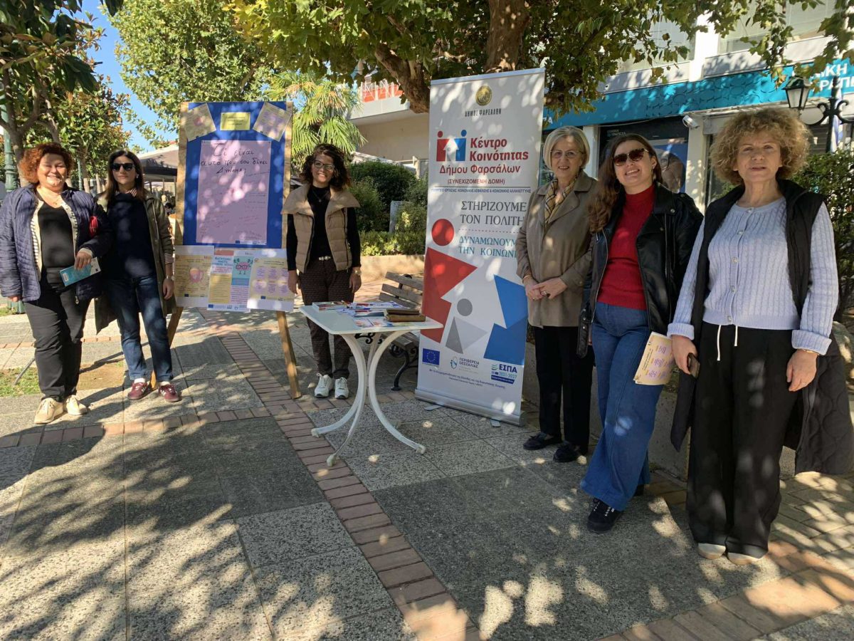 Το Κέντρο Κοινότητας (Συνεχιζόμενη Δομή) του Δήμου Φαρσάλων, με αφορμή την Παγκόσμια Ημέρα Ψυχικής Υγείας, πραγματοποίησε την Παρασκευή 11 Οκτωβρίου 2025 δράση ενημέρωσης στην Πλατεία Λαού του Δήμου μας, με στόχο την ευαισθητοποίηση και ενημέρωση των πολιτών σχετικά με θέματα ψυχικής υγείας.