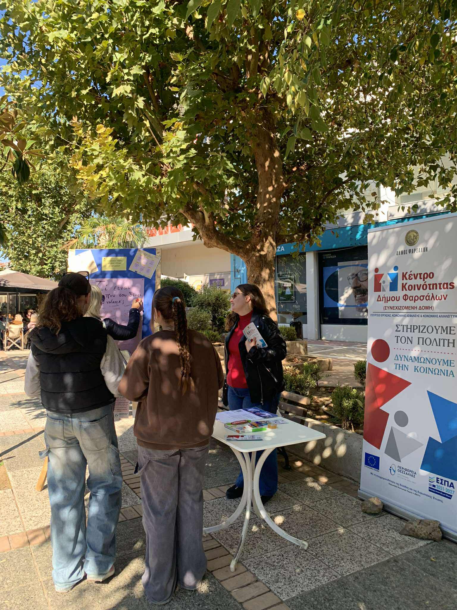 Το Κέντρο Κοινότητας (Συνεχιζόμενη Δομή) του Δήμου Φαρσάλων, με αφορμή την Παγκόσμια Ημέρα Ψυχικής Υγείας, πραγματοποίησε την Παρασκευή 11 Οκτωβρίου 2025 δράση ενημέρωσης στην Πλατεία Λαού του Δήμου μας, με στόχο την ευαισθητοποίηση και ενημέρωση των πολιτών σχετικά με θέματα ψυχικής υγείας.