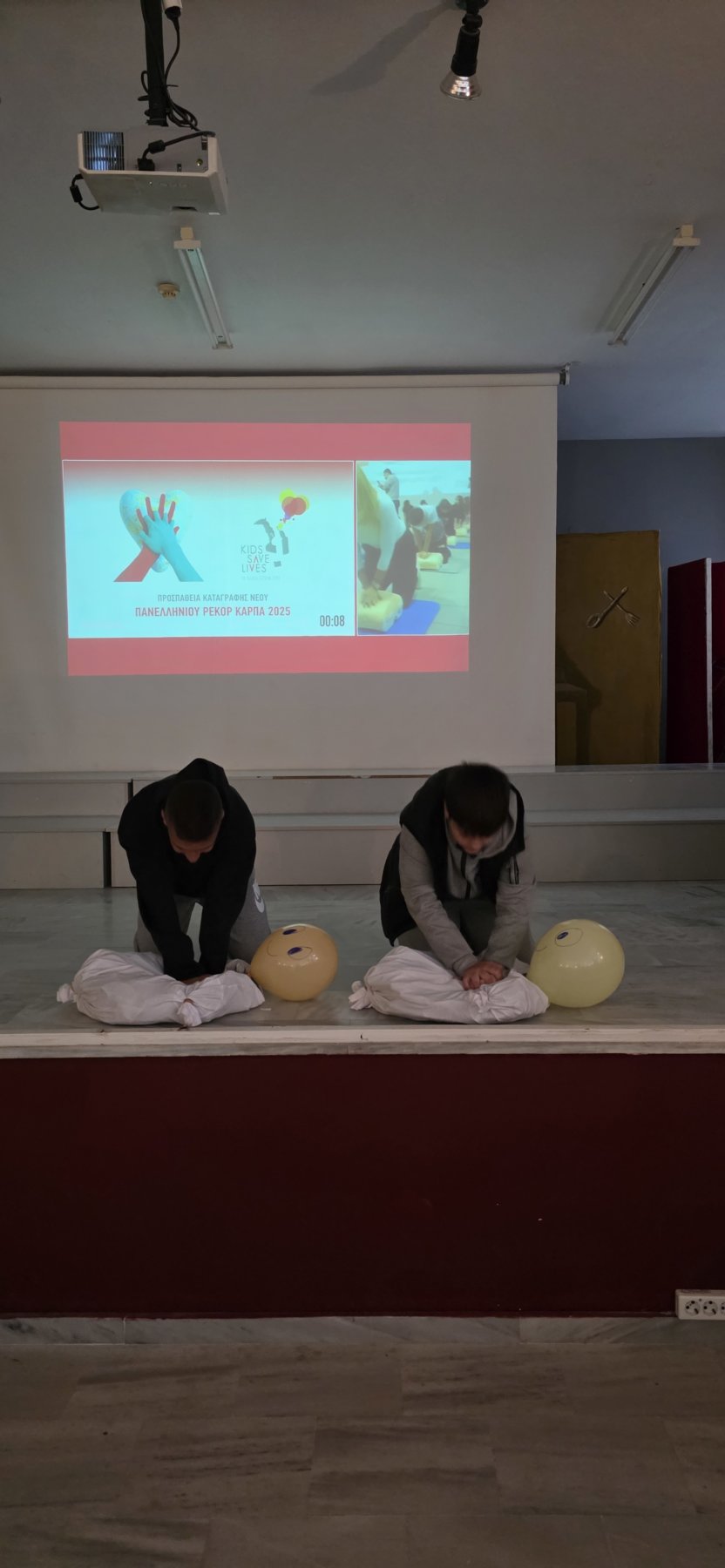 Για 60 λεπτά παρακολούθησαν την ενημέρωση των εκπαιδευτών του KIDS SAVE LIVES και έπειτα για 2 λεπτά ταυτόχρονα με χιλιάδες δεκάδες μαθητές 555 Σχολείων από όλη την Ελλάδα και την βοήθεια των εκπαιδευτικών κ.Γεροβασίλη Αγγελικής, κ. Μπίτου Αλίκης, και κ. Σιατραβάνη Αθανάσιου, τους παρείχαν ΚΑΡΠΑ σε αυτοσχέδια προπλάσματα που είχαν ετοιμάσει τις προηγούμενες ημέρες.