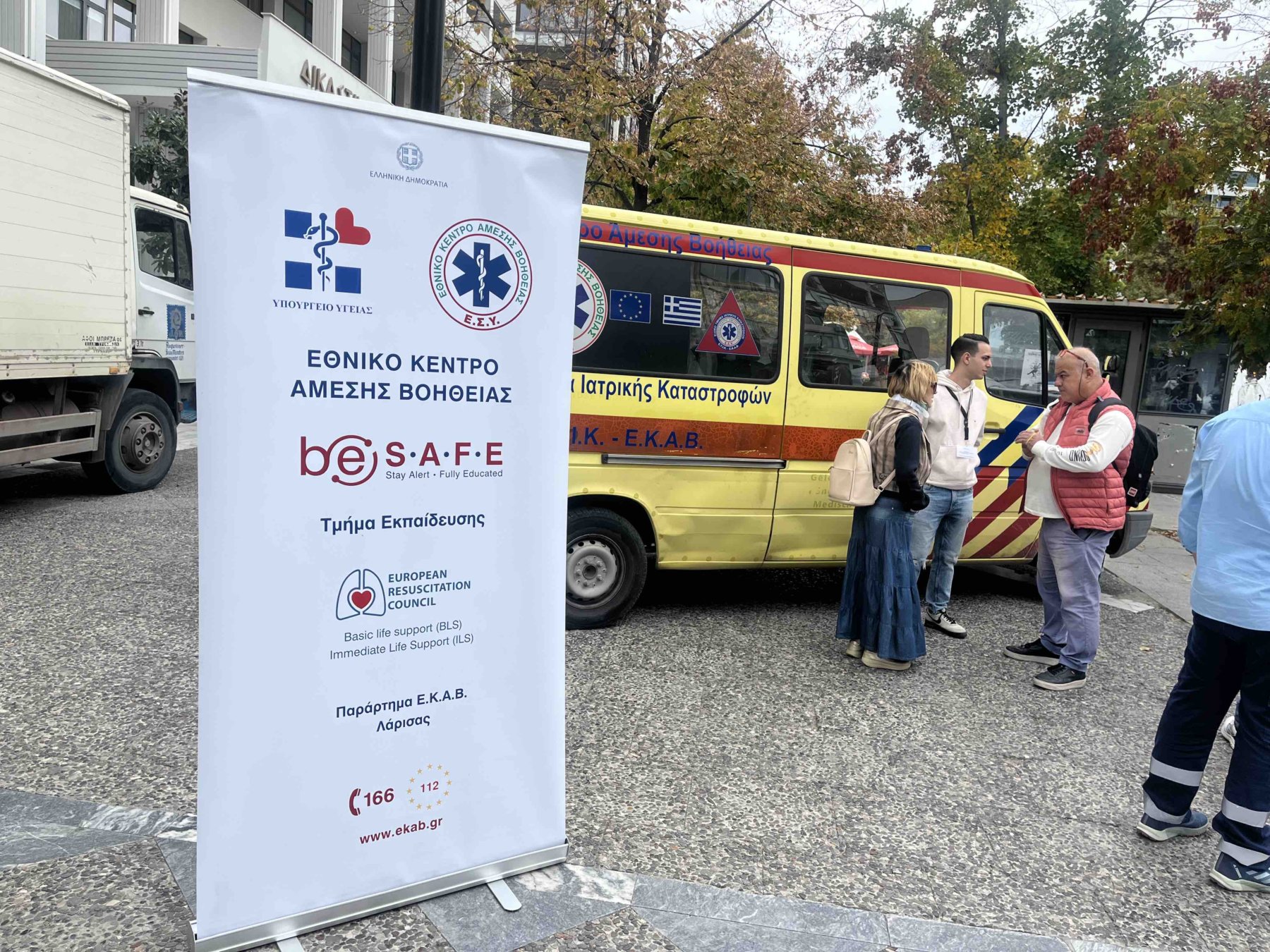 Στη Λάρισα, μέλη του ΕΚΑΒ βρέθηκαν στην Κεντρική Πλατεία, όπου ενημέρωσαν και καθοδήγησαν τους πολίτες μέσα από πρακτικές επιδείξεις, αναδεικνύοντας τον ρόλο του Οργανισμού στην παροχή επείγουσας φροντίδας πανελλαδικά.