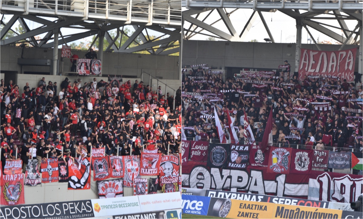 Όμορφες εικόνες στο AEL FC Arena: Οπαδοί της “Βασίλισσας” και του Ολυμπιακού πήραν θέση στα δύο πέταλα (φώτο)