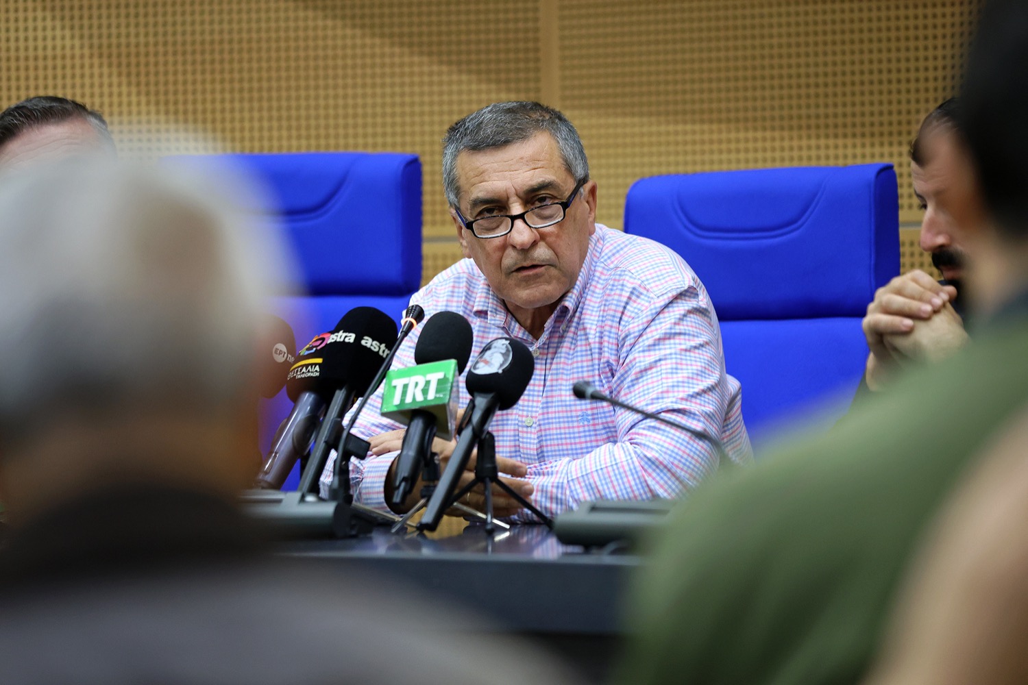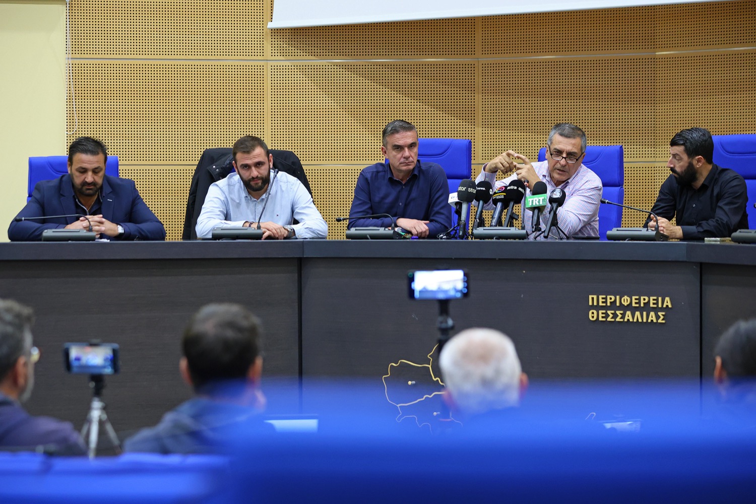Στο πλευρό του περιφερειάρχη κατά τη διάρκεια της συνέντευξης τύπου ήταν ο Αντιπεριφερειάρχης Πρωτογενούς Τομέα Δημήτρης Τσέτσιλας καθώς και στενοί συνεργάτες του Δημήτρη Κουρέτα, αλλά και πολλοί κτηνοτρόφοι.