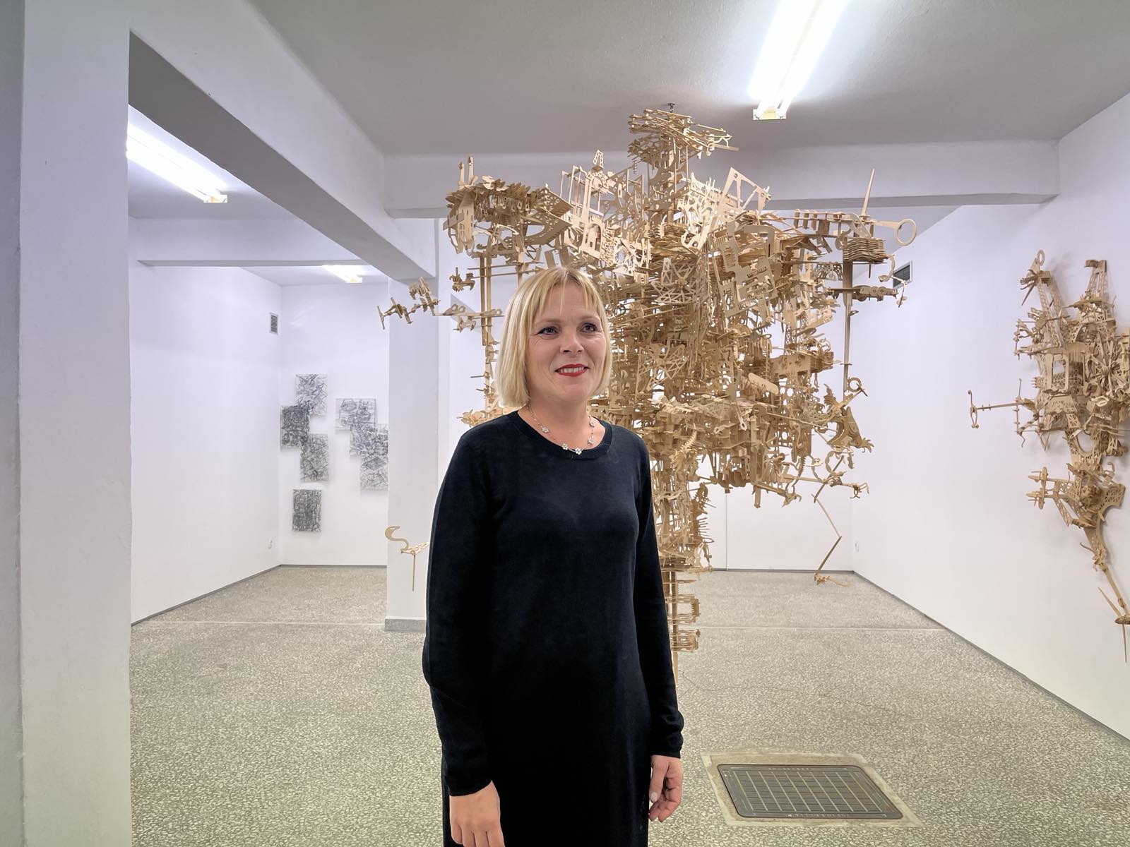 Για την έκθεσή της η δημιουργός, ανέφερε: «Στον κεντρικό χώρο της γκαλερί βλέπετε ένα γλυπτό που έχει δημιουργηθεί από βιομηχανικά ξύλινα παιχνίδια, τα οποία έχουν συγκεκριμένες οδηγίες χρήσεως.