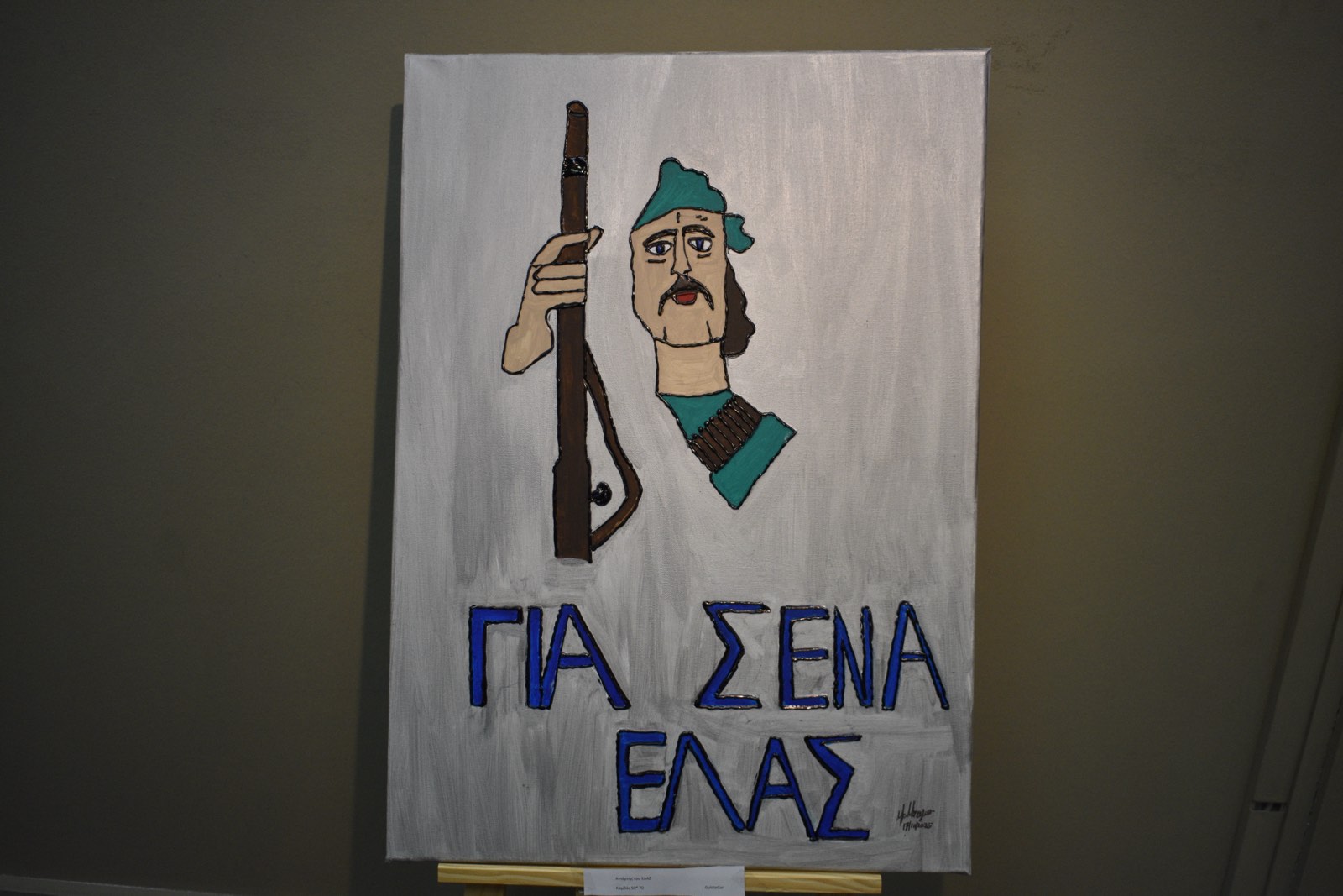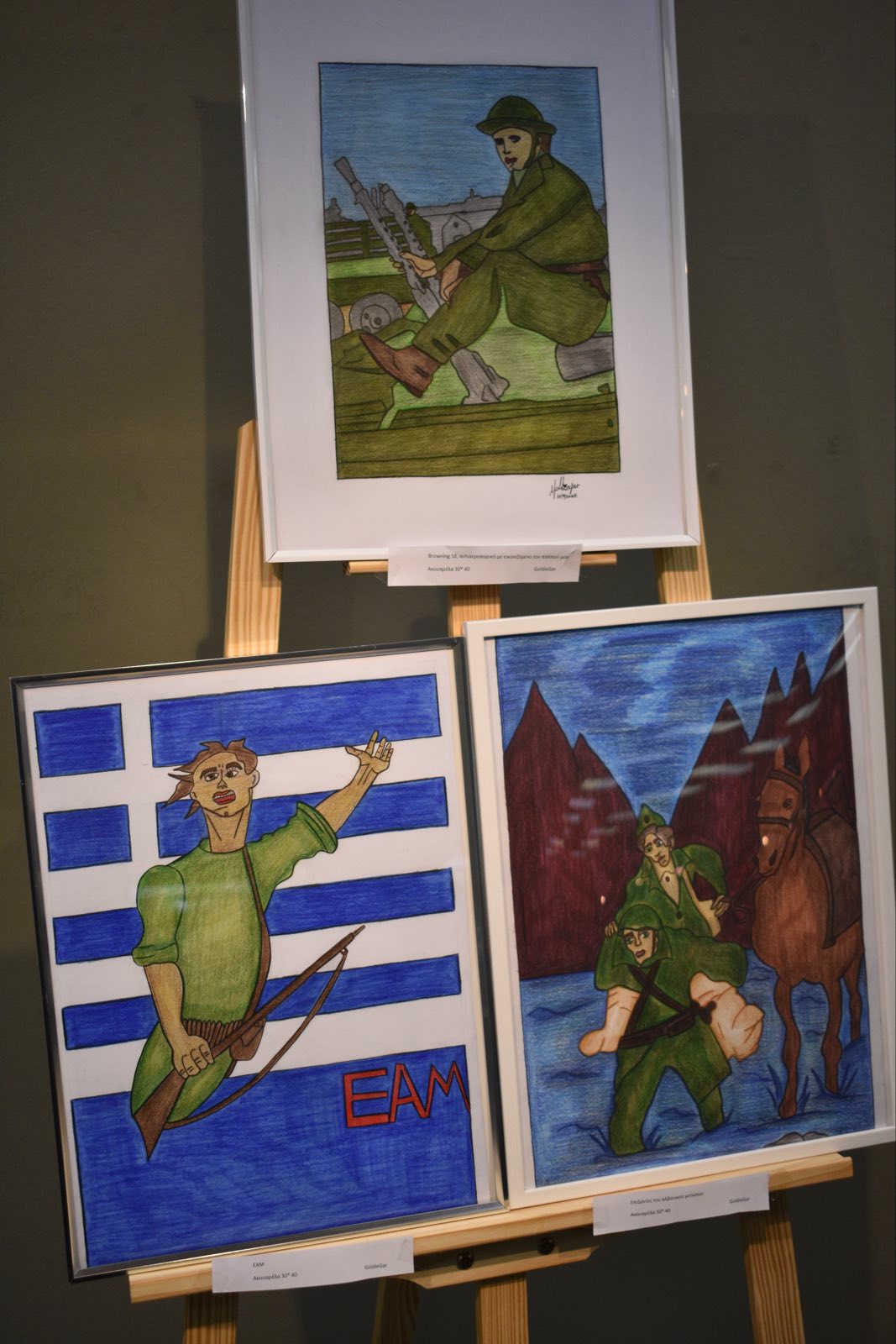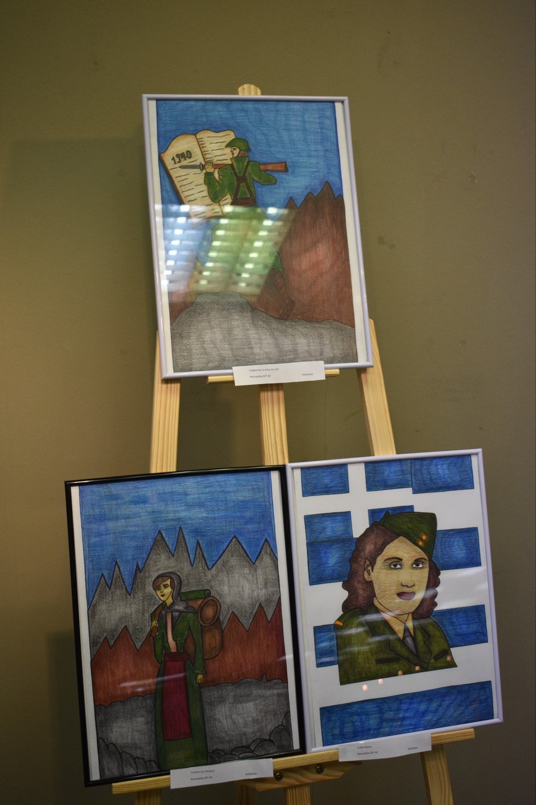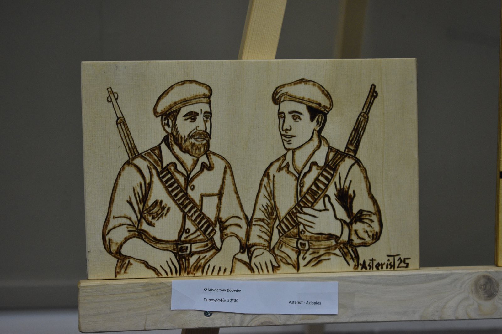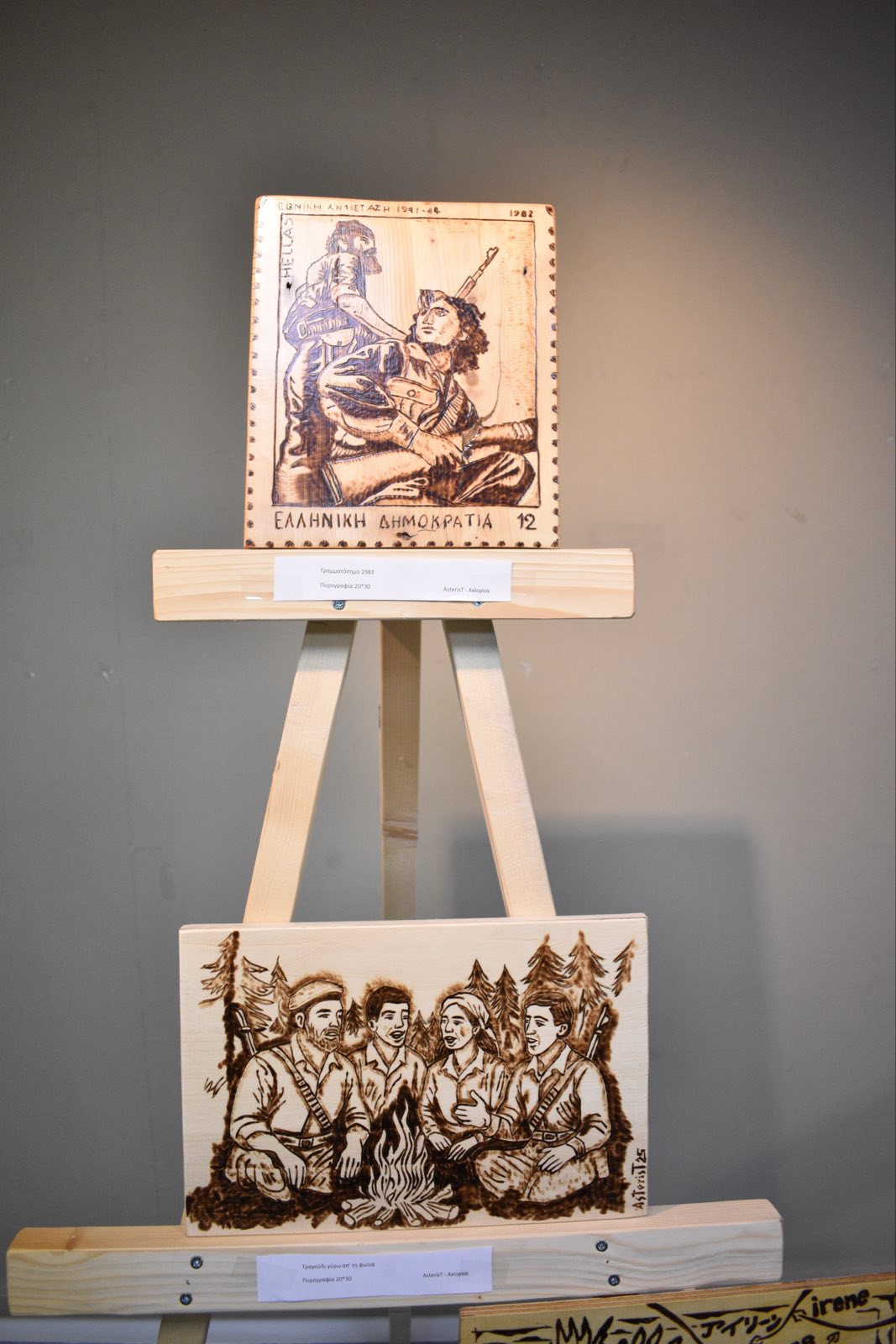 «Η έκθεση είναι για την Εθνική Αντίσταση. Εδώ θα δούμε έργα που είναι σχέδιο ζωγραφικής σε χαρτί, καμβά, με διαμαντογραφία και με πυροχαρακτική στο ξύλο, τόνισε η Χρύσα Γκαρέλη.