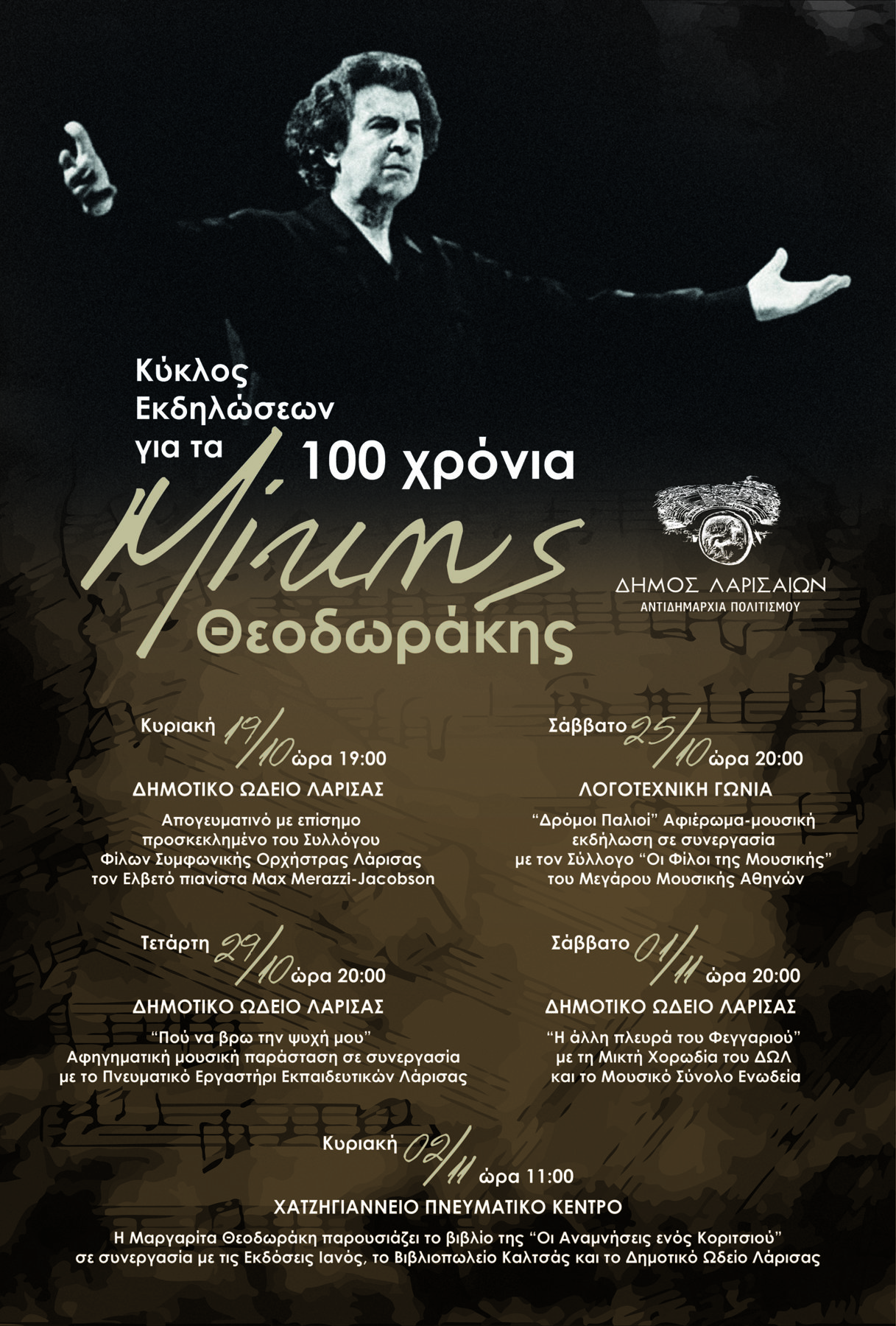 Αφιέρωμα στον Μίκη Θεοδωράκη από την Αντιδημαρχία Πολιτισμού του Δήμου Λαρισαίων και τον Σύλλογο “Οι Φίλοι της Μουσικής”