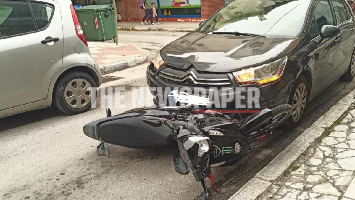Τροχαίο ατύχημα στο Βόλο: Αυτοκίνητο συγκρούστηκε με μηχανάκι (φώτο)