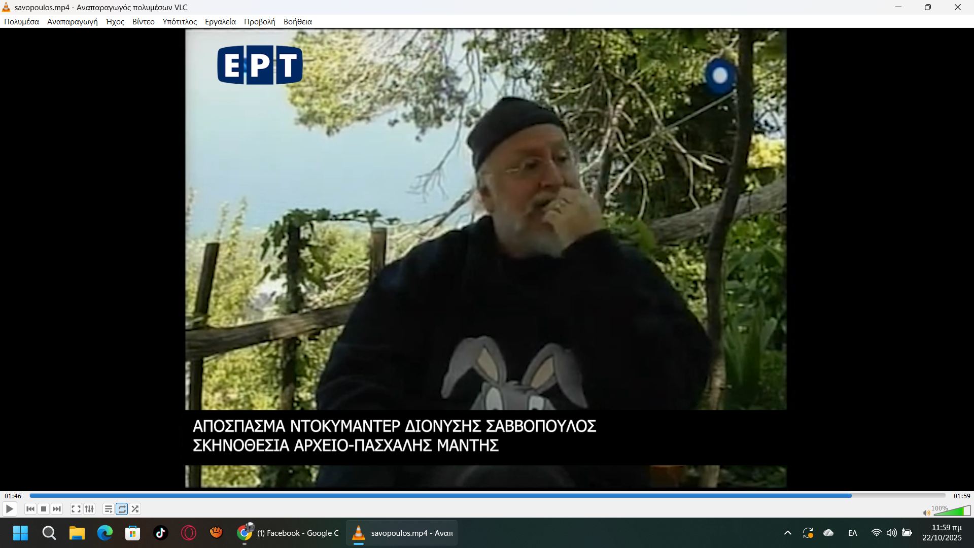 Δυστυχώς, από αυτό διασώθηκε μόνο ένα μικρό απόσπασμα· τα υπόλοιπα τα πήρε η πλημμύρα «Ντάνιελ», μαζί με ολόκληρο το αρχείο μιας ζωής με πάνω από 300 ντοκιμαντέρ….