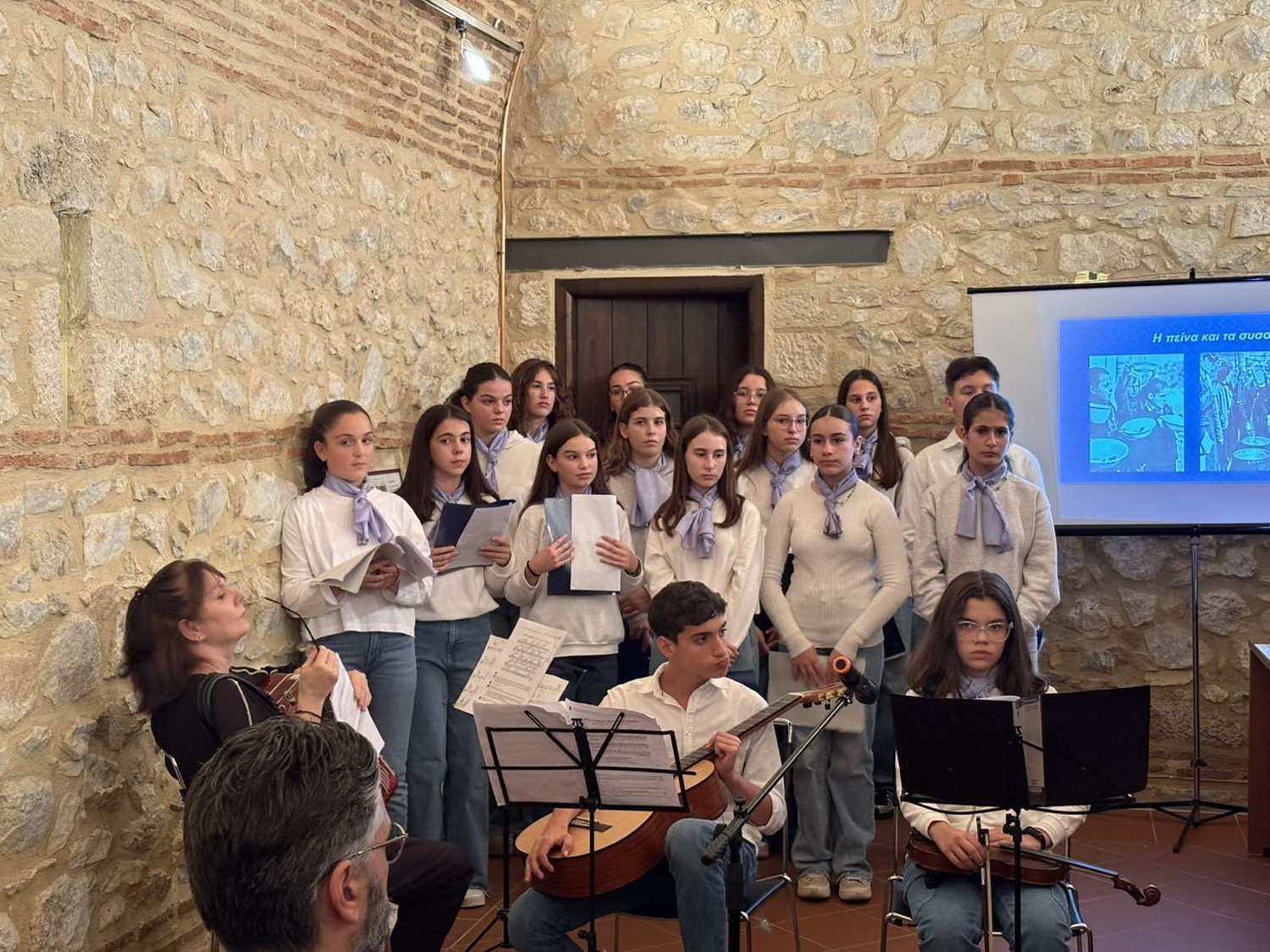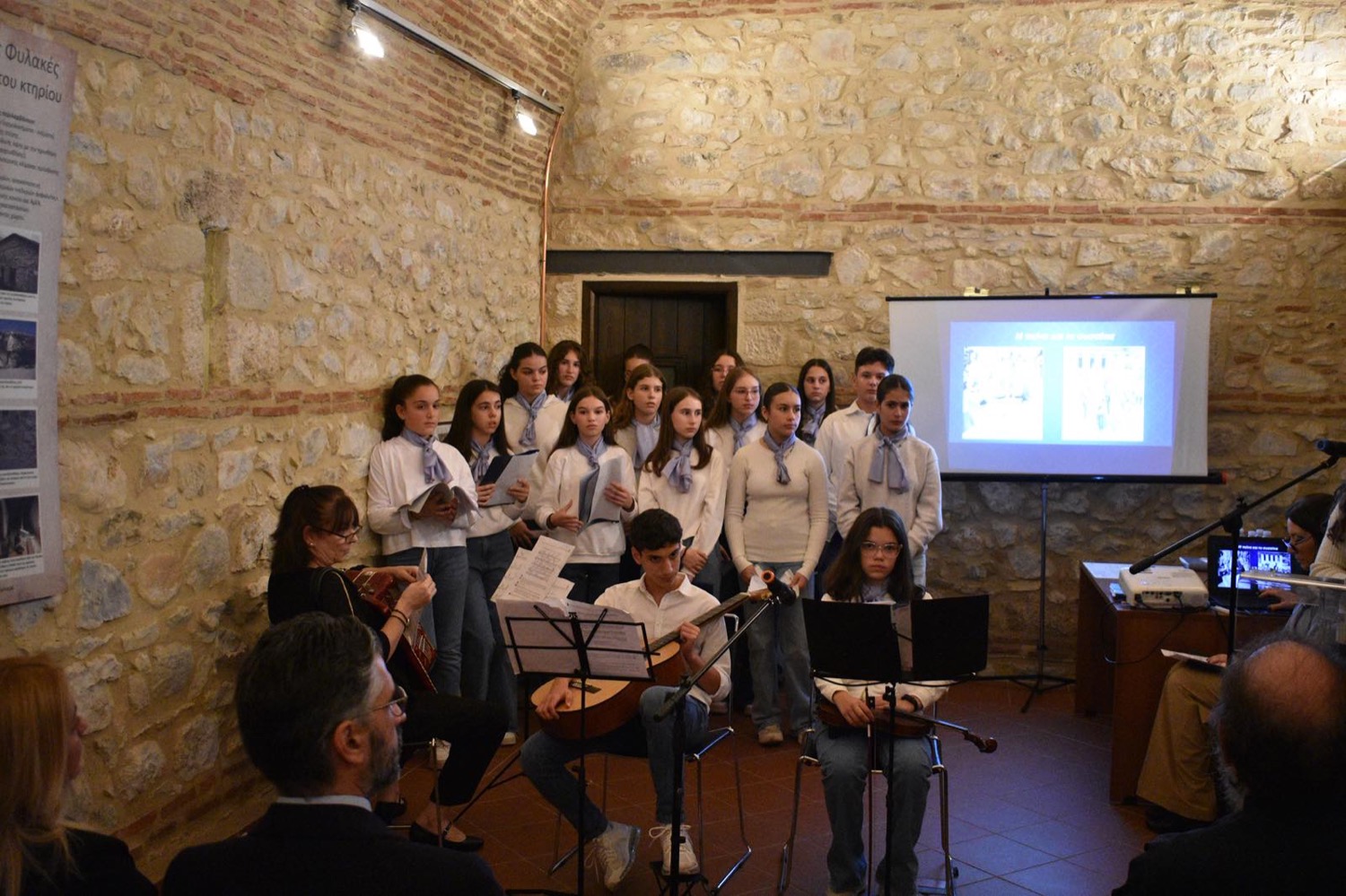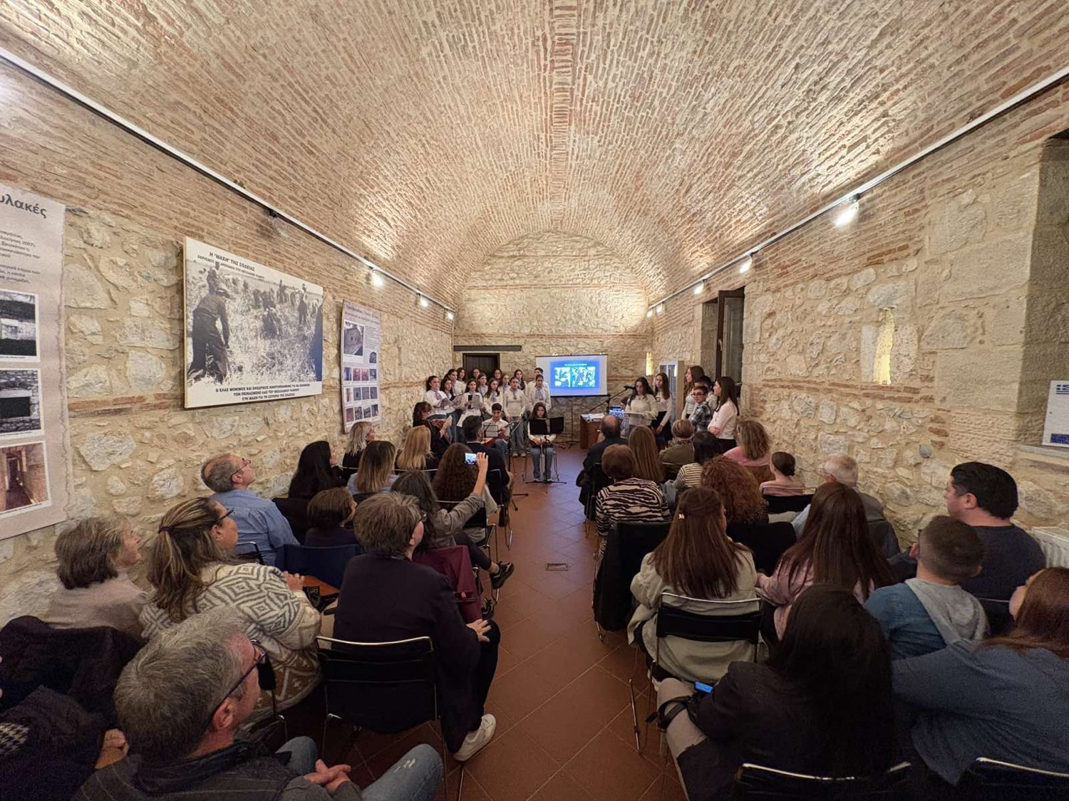 Το κοινό είχε την ευκαιρία να απολαύσει και τη μουσική χορωδία του 9ου Γυμνασίου Λάρισας, υπό τη διδασκαλία και διεύθυνση της Δώρας Τερζούδη, η οποία πλαισίωσε την εκδήλωση με τραγούδια της Αντίστασης και συνθέσεις αφιερωμένες στην Ελευθερία και την Πατρίδα, δημιουργώντας μια ατμόσφαιρα βαθιάς συγκίνησης.