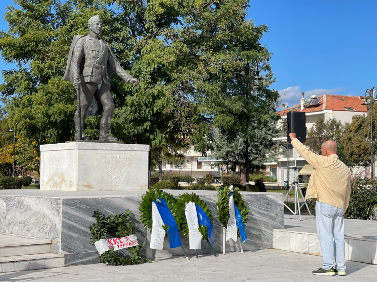 Στην εκδήλωση μίλησαν μαθήτρια του 2ου Γυμνασίου Τυρνάβου, ο Θανάσης Σερδένης εκ μέρους του παραρτήματος Λάρισας της ΠΕΑΕΑ – ΔΣΕ, και ο Δήμαρχος Τυρνάβου Στέλιος Τσικριτσής, ο οποίος αναφέρθηκε στη σημασία της ημέρας και στα διαχρονικά διδάγματα του αγώνα του λαού για λευτεριά, δημοκρατία και κοινωνική δικαιοσύνη.