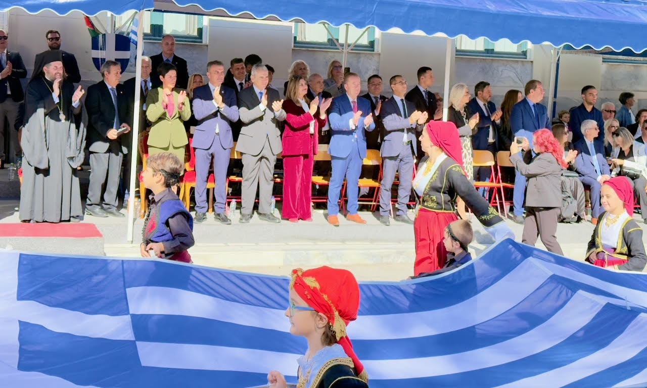 Χαρακόπουλος στην παρέλαση στη Λάρισα: “Όχι” στην αμφισβήτηση δημοκρατικών θεσμών και αξιών (βίντεο)