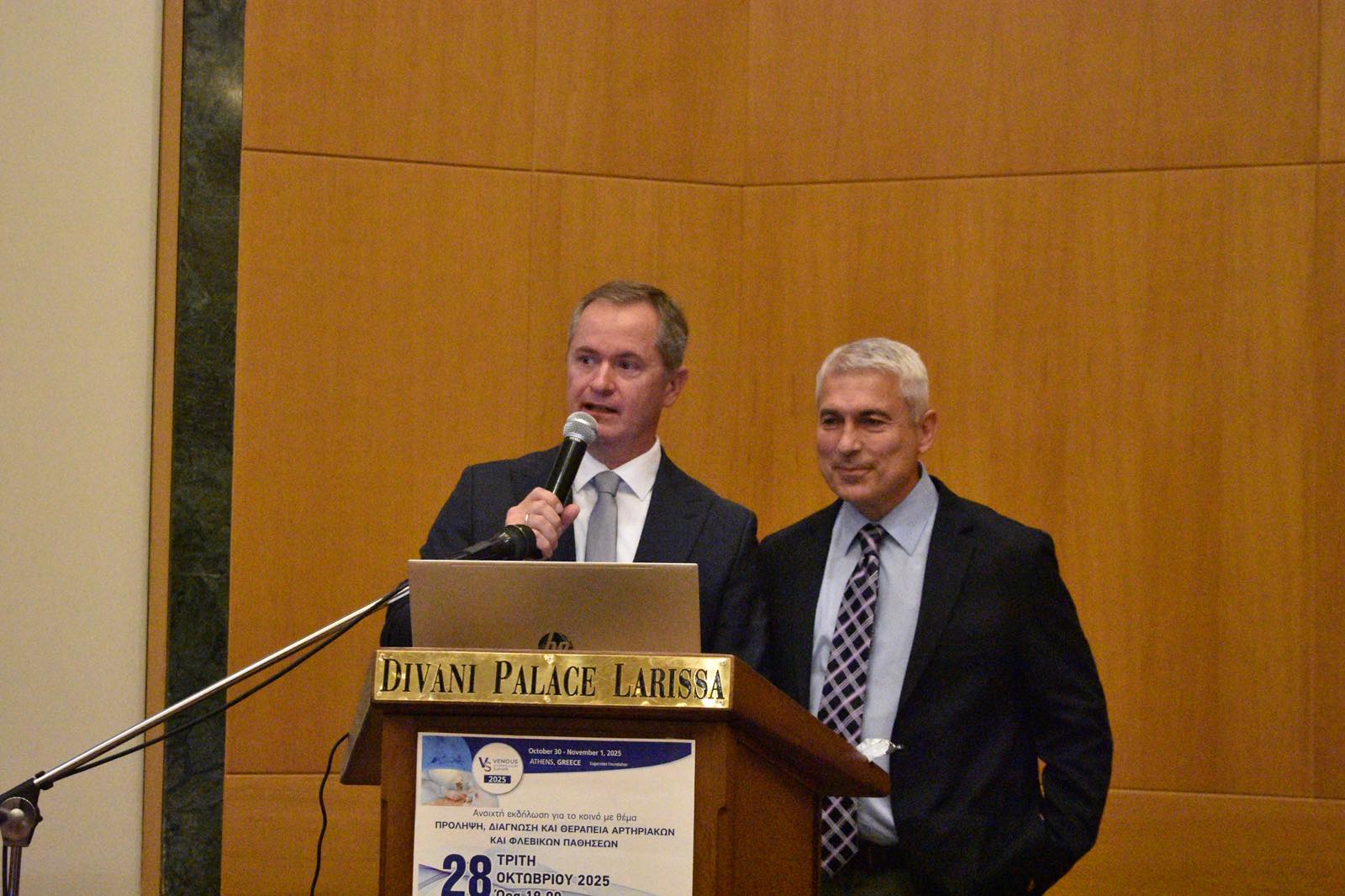 Με απόλυτη επιτυχία πραγματοποιήθηκε σήμερα, Τρίτη 28 Οκτωβρίου στην αίθουσα εκδηλώσεων του ξενοδοχείου Divani Palace Λάρισα, η εκδήλωση ενημέρωσης και ευαισθητοποίησης του κοινού με θέμα «Πρόληψη, Διάγνωση και Θεραπεία Αρτηριακών και Φλεβικών Παθήσεων».