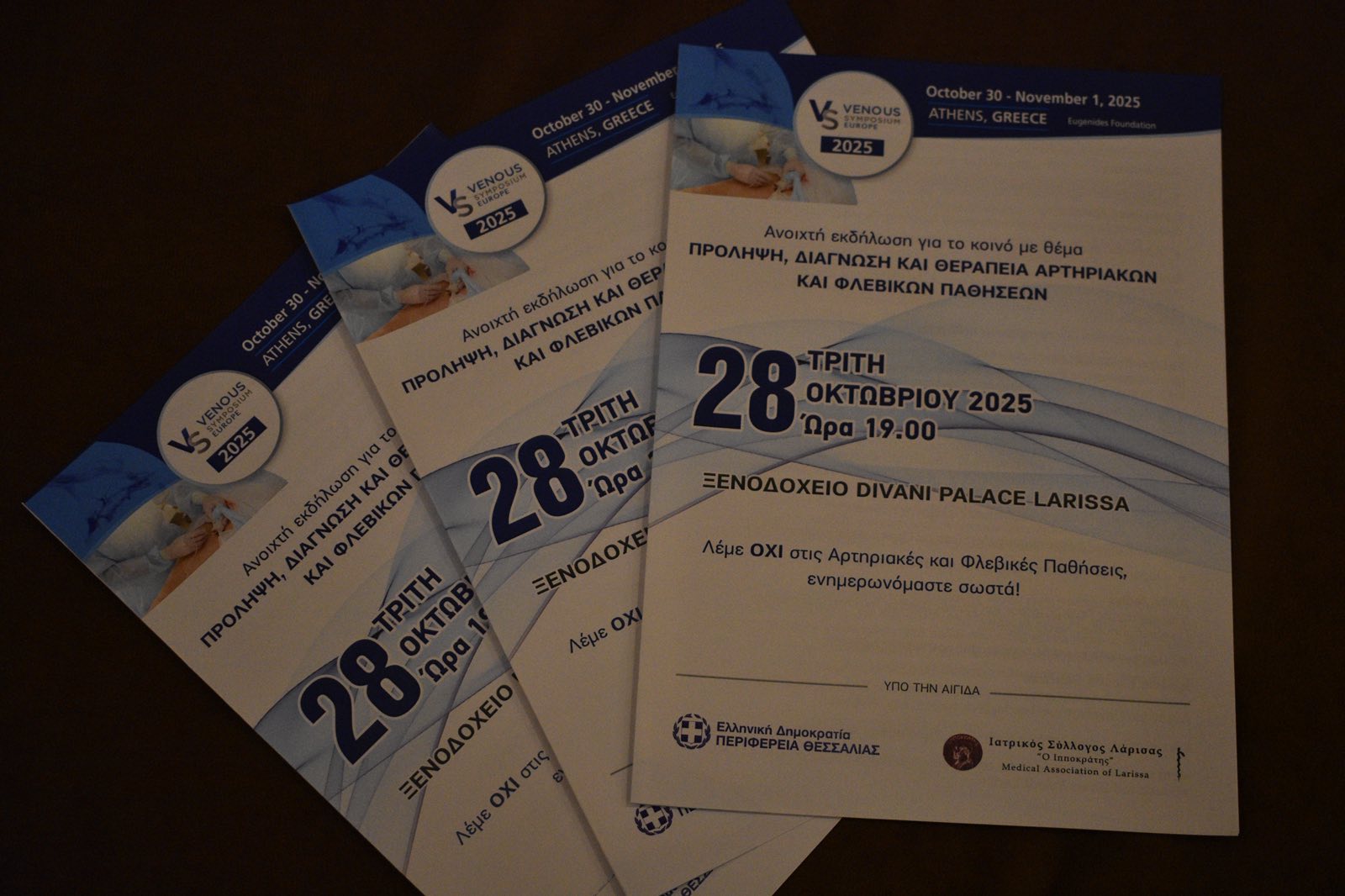 Η εκδήλωση πραγματοποιήθηκε υπό την αιγίδα της Περιφέρειας Θεσσαλίας και του Ιατρικού Συλλόγου Λάρισας “Ο Ιπποκράτης”, και στόχος της ήταν η ενημέρωση και ευαισθητοποίηση του κοινού σχετικά με την πρόληψη, τη διάγνωση και την αποτελεσματική αντιμετώπιση των αγγειακών παθήσεων, όπως της φλεβικής ανεπάρκειας και των αρτηριοπαθειών των κάτω άκρων.