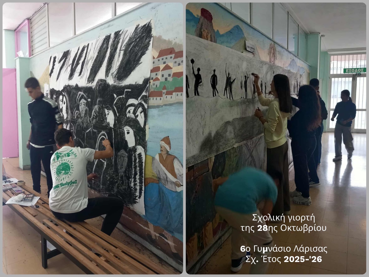 Οι μαθητές και οι μαθήτριες του σχολείου μας-6ο Γυμνάσιο Λάρισας συμμετείχαν ενεργά, στόλισαν τους χώρους του σχολείου με εικαστικά έργα τους που προετοίμαζαν συνεργατικά αρκετές μέρες νωρίτερα και τίμησαν την ηρωική στάση του ελληνικού λαού κατά τον Β΄Παγκόσμιο Πόλεμο ενώ τόνισαν τη σημασία της ελευθερίας και στις μέρες μας.