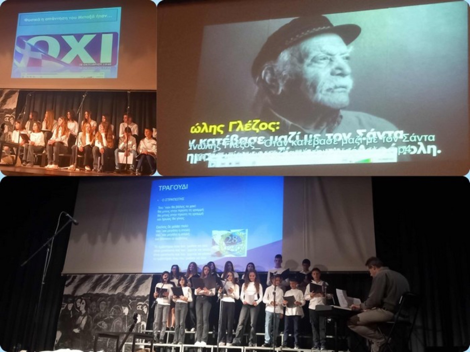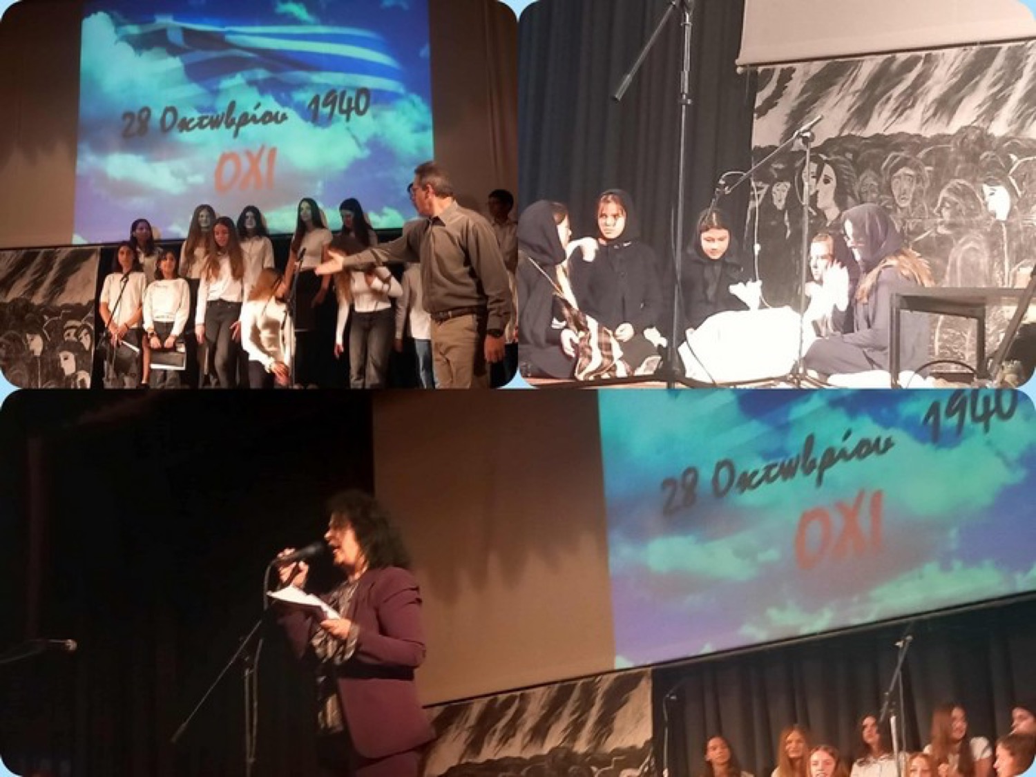 Η ιστορική επέτειος του «ΟΧΙ» γιορτάστηκε με ποιήματα, εορταστικά τραγούδια από τη χορωδία, θεατρικά δρώμενα-Οι Γυναίκες Ηπειρώτισσες, επετειακά βίντεο, αφηγήσεις αναδεικνύοντας έτσι με εκπαιδευτικό και δημιουργικό τρόπο το μήνυμα της ιστορικής μέρας του Ελληνικού Εθνους.