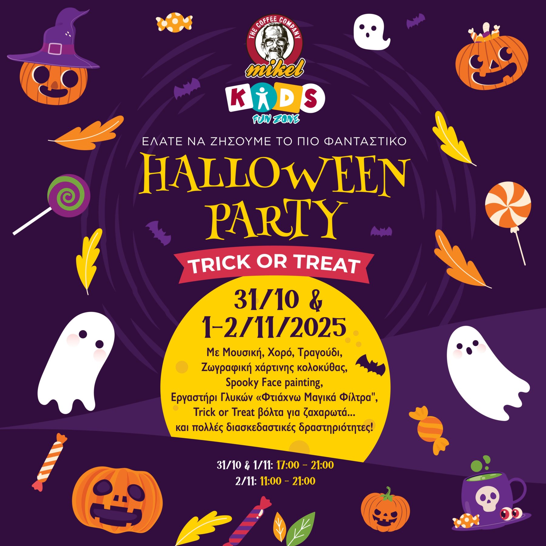 Το πιο τρομακτικά διασκεδαστικό τριήμερο είναι εδώ! Το Mikel Coffee Train Park στη Λάρισα υποδέχεται το πιο μαγικό και διασκεδαστικό τριήμερο του φθινοπώρου με ένα ξεχωριστό Halloween Party, στις 31 Οκτωβρίου και 1-2 Νοεμβρίου!