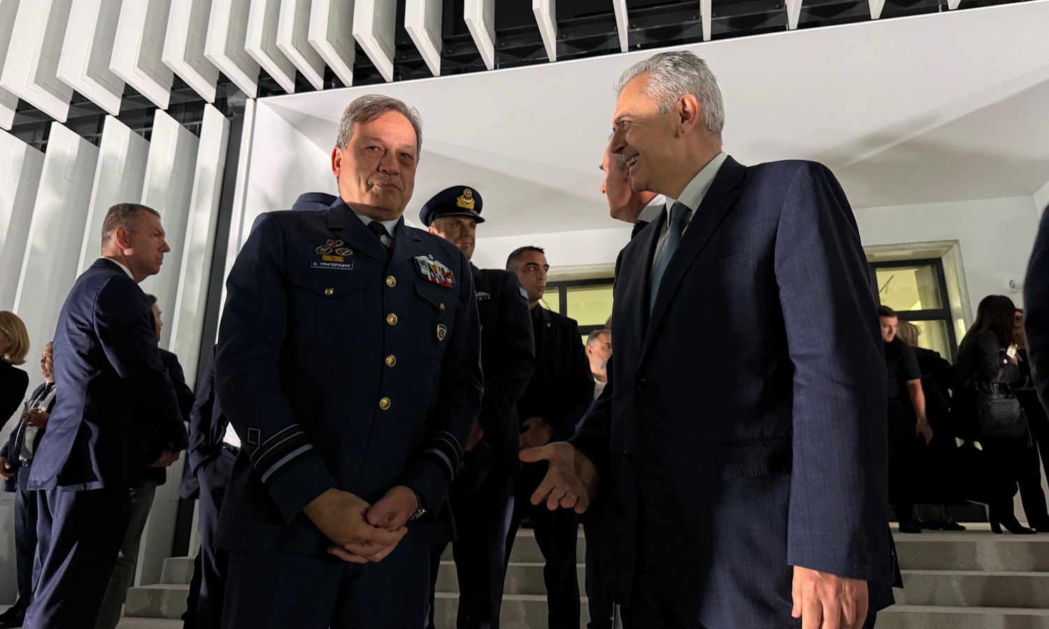 Βεβαίως, η επιβεβλημένη αναβάθμιση της αποτρεπτικής ικανότητας της χώρας γίνεται πραγματικότητα γιατί η κυβέρνηση Μητσοτάκη ακολουθεί μια συνετή και συνεπή οικονομική πολιτική που επιτρέπει μέσα στον δεδομένο δημοσιονομικό χώρο να δίνει στην Άμυνα το μερίδιο που δικαιούται. Θα ήθελα να συγχαρώ τον Νίκο Δένδια για το συνολικό αποτέλεσμα και το σπουδαίο, οραματικό θα έλεγα, έργο που επιτελεί. Αναμφίβολα, συγχαρητήρια -δικαιωματικά- ανήκουν και στον καθηγητή του Αριστοτελείου Πανεπιστημίου Θεσσαλονίκης κ. Κώστα Βαρώτσο και τους συνεργάτες του, για αυτό το υψηλής αισθητικής και πλήρες συμβολισμών αρχιτεκτονικό δημιούργημα. Τέλος, άξια επαίνου είναι η εταιρεία METLEN Energy and Metals για τη δωρεά της, που δείχνει τη σημασία που μπορεί να έχει ο ιδιωτικός τομέας για την επίτευξη εθνικών στόχων».